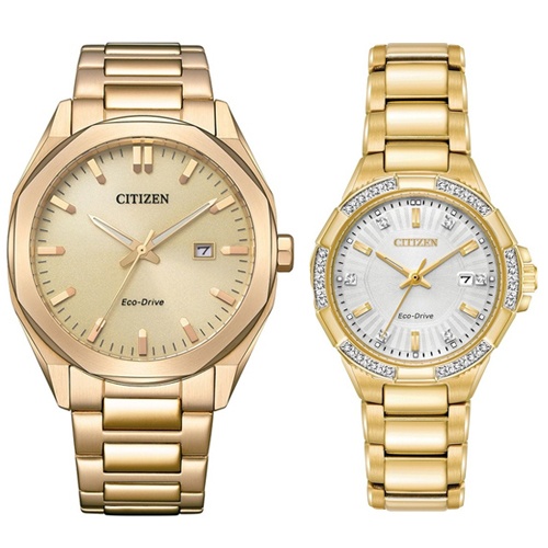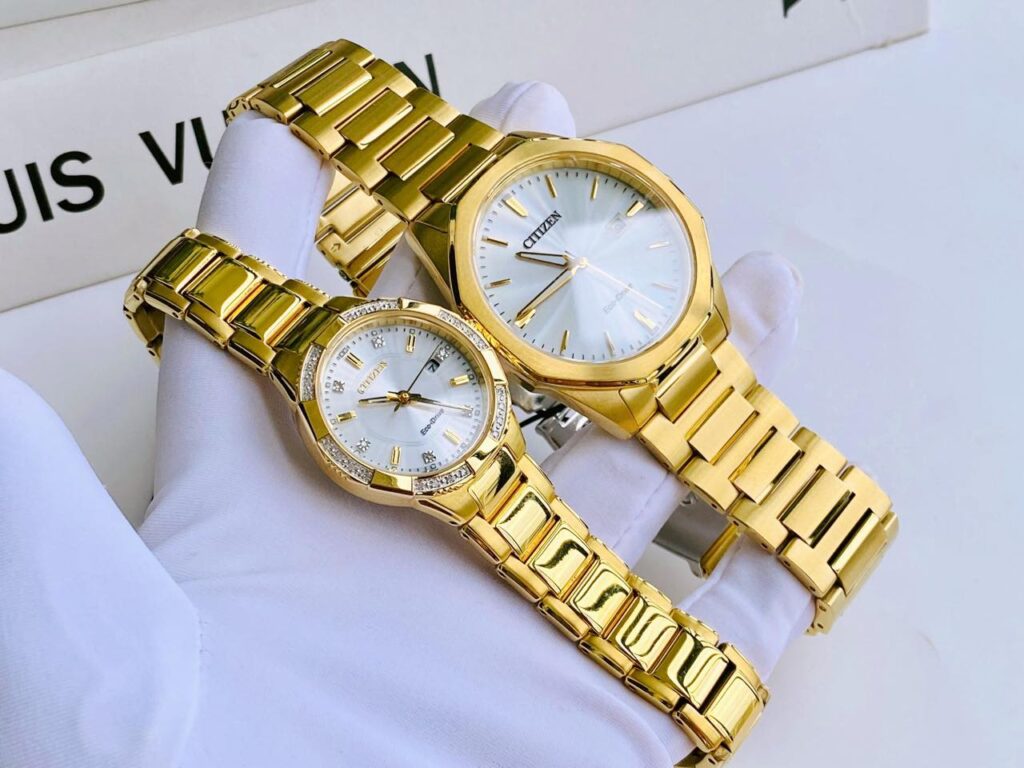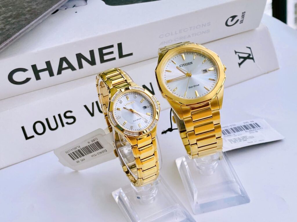 Đồng Hồ Citizen Chính Hãng Nam Nữ BM7603-82P EW2462-51A Gold Stainless Steel Couple Watch