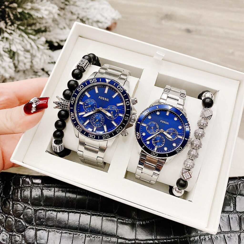 Đồng Hồ Fossil Chính Hãng Nam Nữ Blue Dial Stainless Steel Couple Watch
