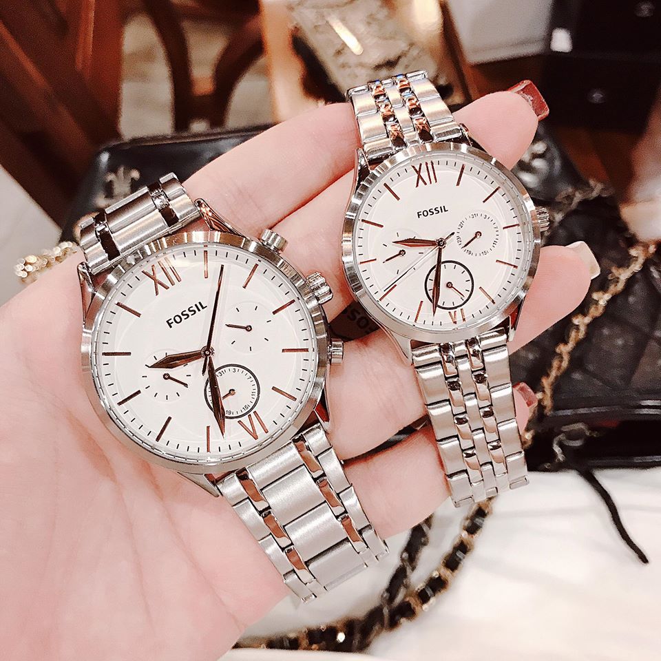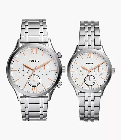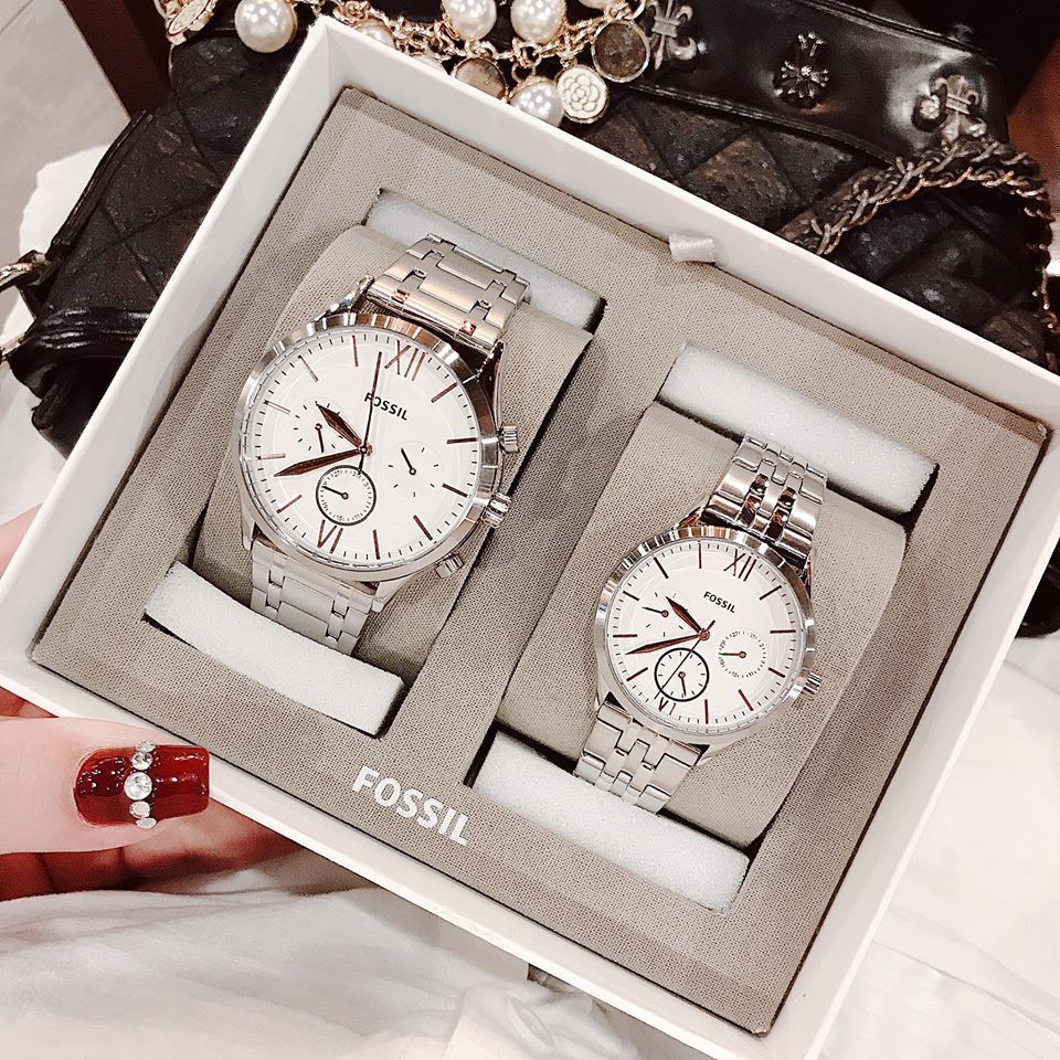 Đồng Hồ Fossil Chính Hãng Nam Nữ BQ2468SET His and Her Fenmore Midsize Multifunction Stainless Steel Gift Set Watch