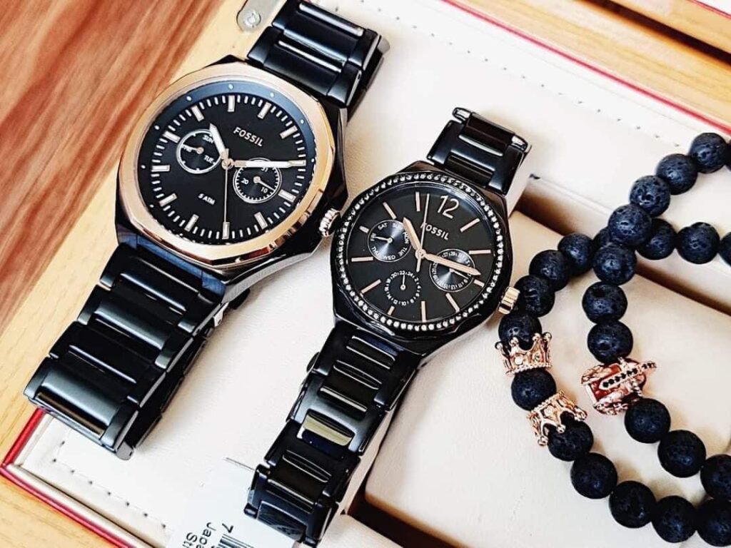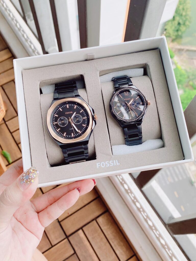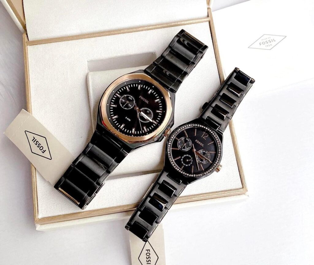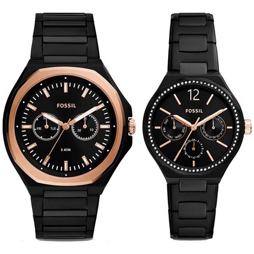 Đồng Hồ Fossil Chính Hãng Nam Nữ BQ2645SET His and Her Multifunction Black Stainless Steel Couple Watch