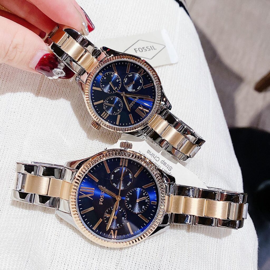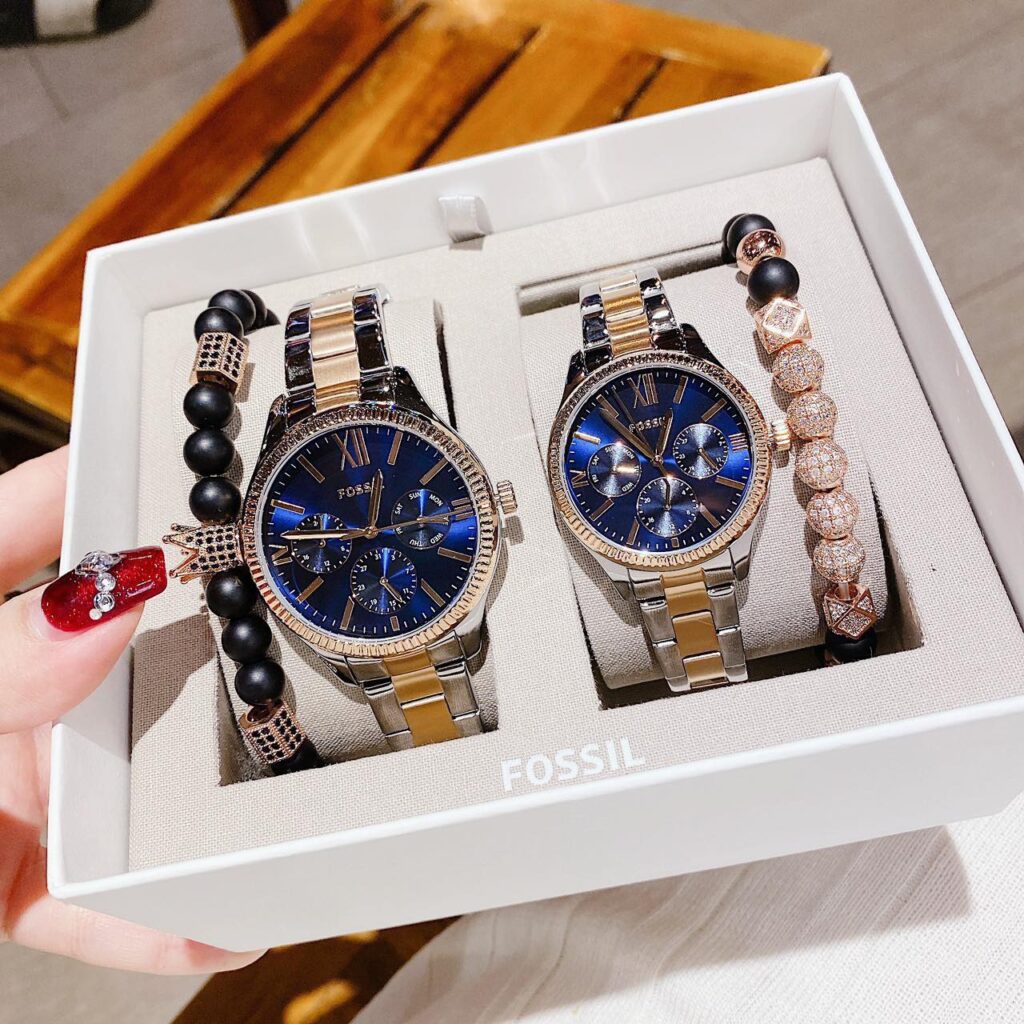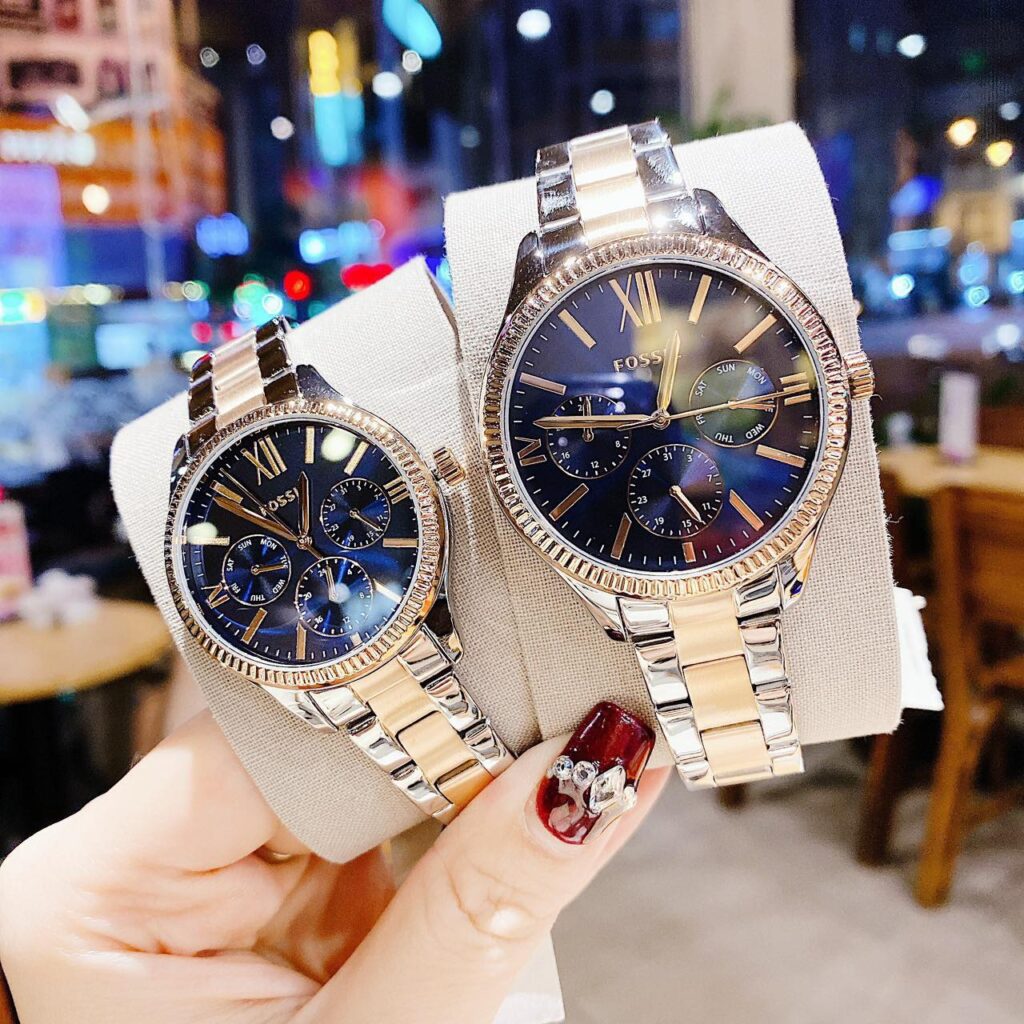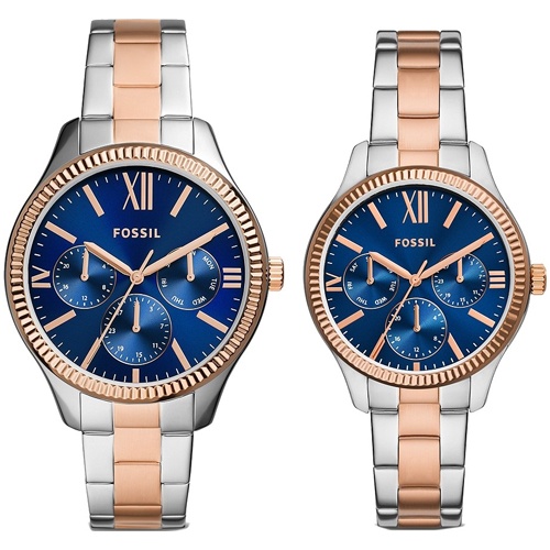 Đồng Hồ Fossil Chính Hãng Nam Nữ BQ2736SET His and Hers Multifunction Two-Tone Stainless Steel Couple Watch