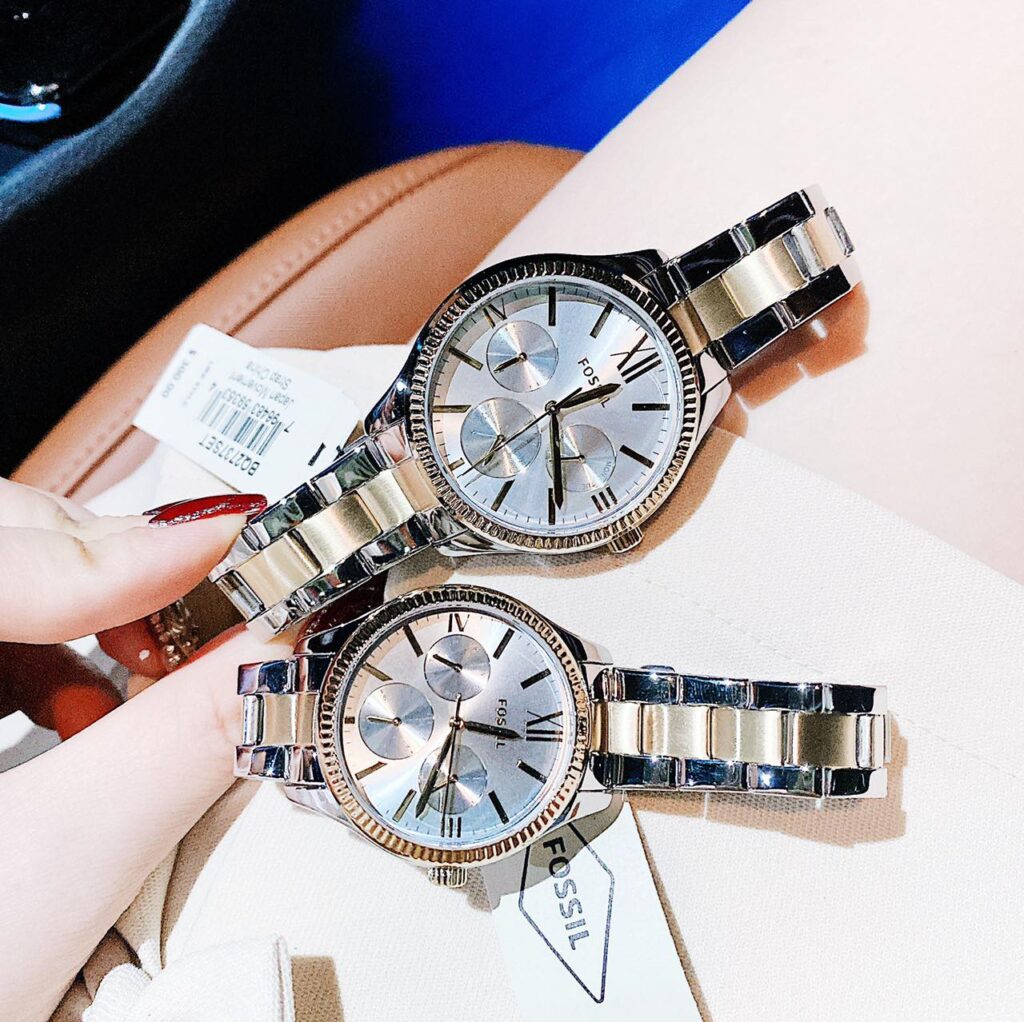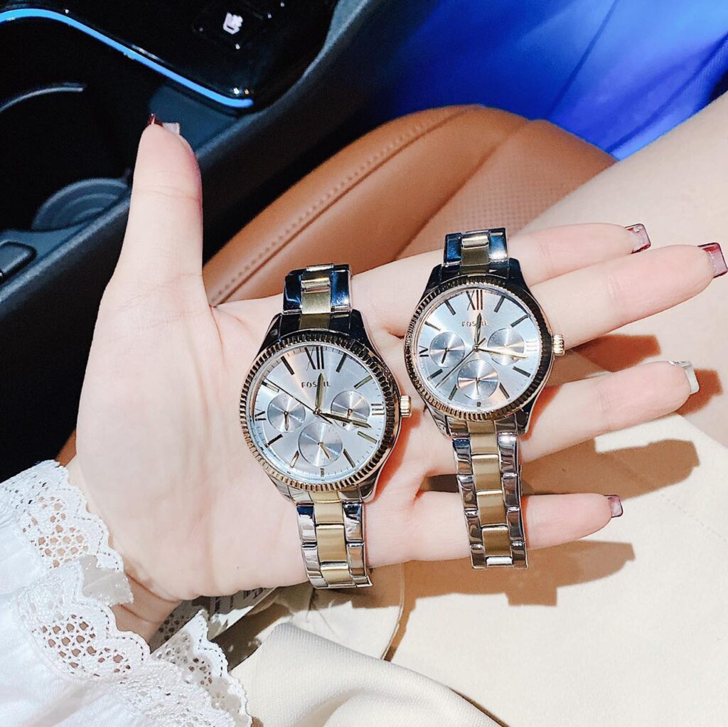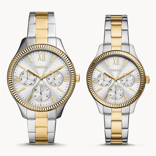 Đồng Hồ Fossil Chính Hãng Nam Nữ BQ2737SET His and Hers Multifunction Two-Tone Stainless Steel Couple Watch