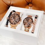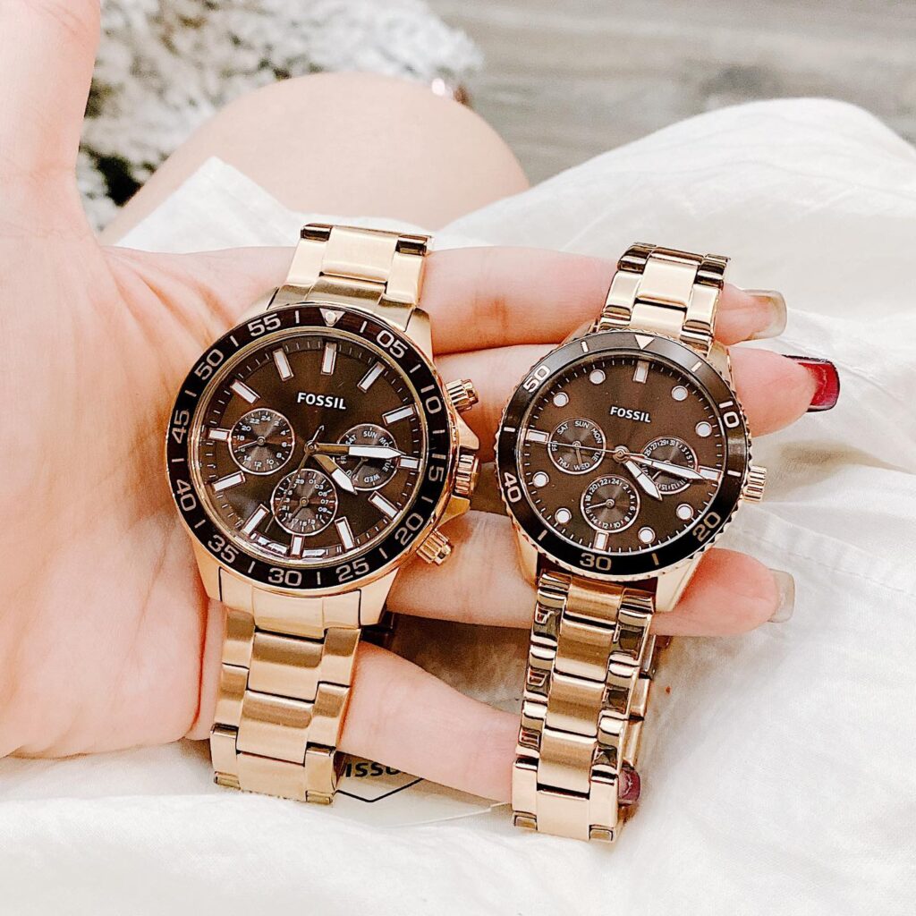 Đồng Hồ Fossil Chính Hãng Nam Nữ BQ2827SET His and Hers Multifunction Rose Gold-Tone Stainless Steel Couple Watch