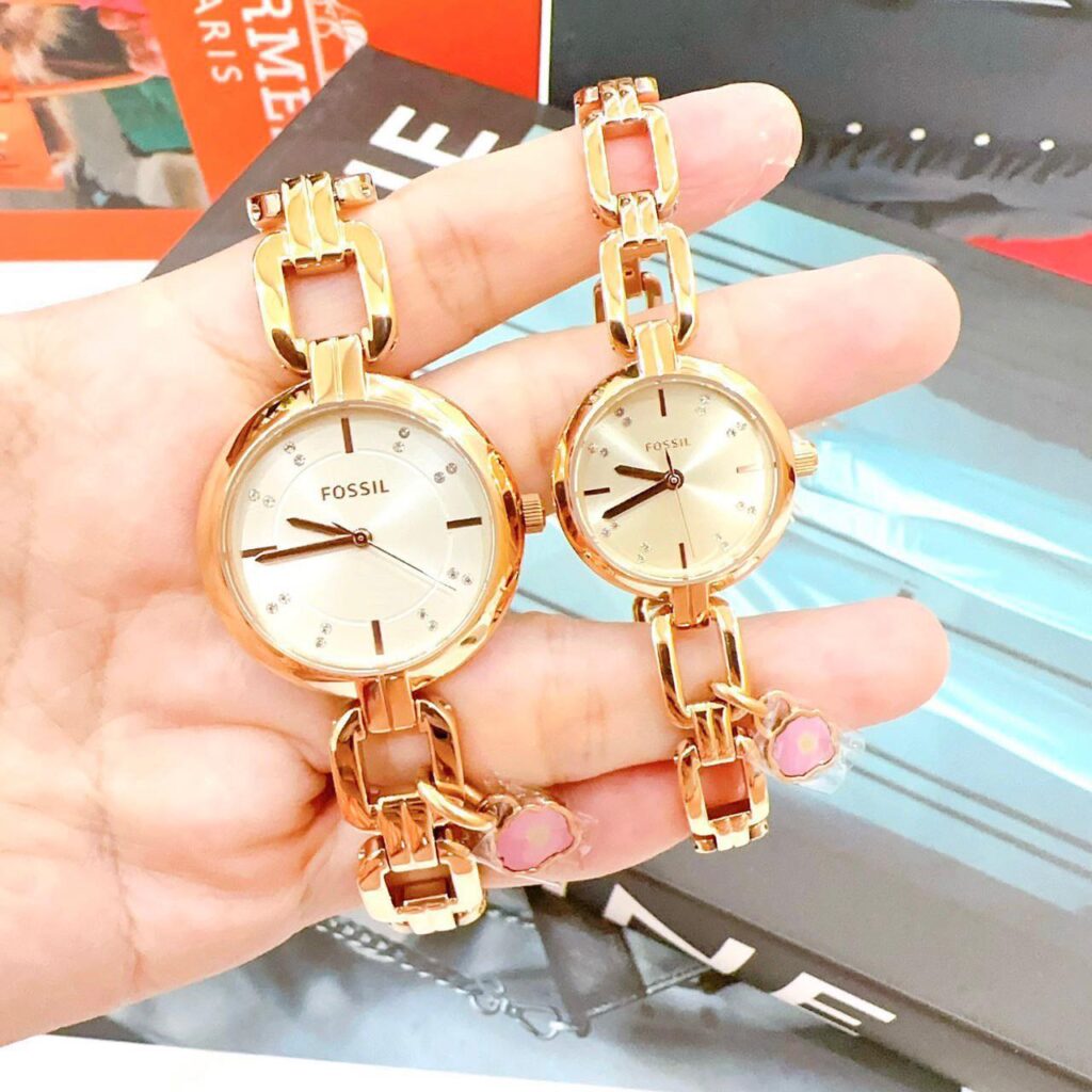 Đồng Hồ Fossil Chính Hãng Nam Nữ BQ3881SET Kerrigan Three-Hand Rose Gold-Ton Couple Watch