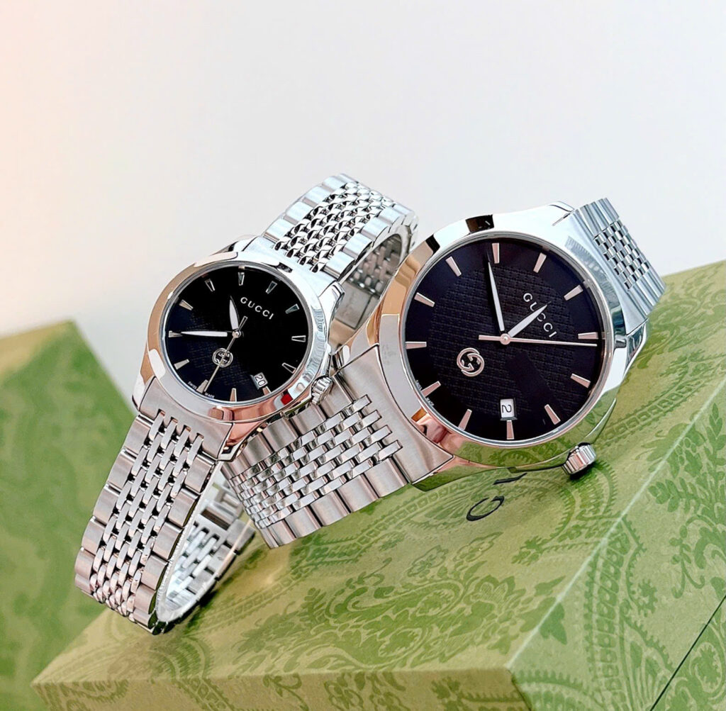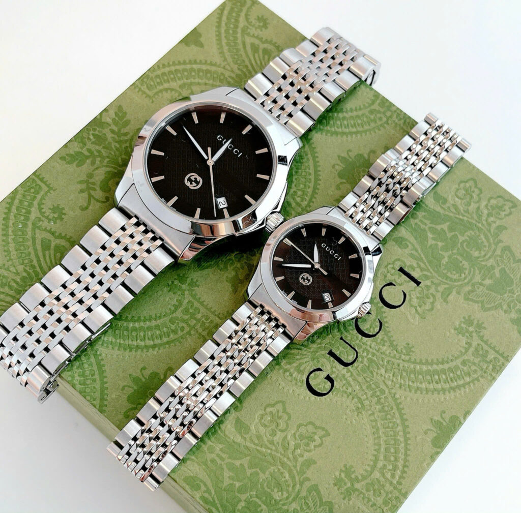 Đồng Hồ Gucci Chính Hãng Nam Nữ YA1264106 YA1265006 G-Timeless Black Dial Couple Watch