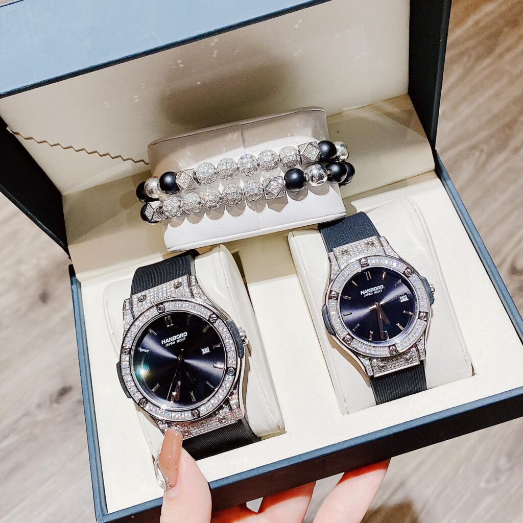 Đồng Hồ Hanboro Chính Hãng Nam Nữ Black Silicone Couple Watch