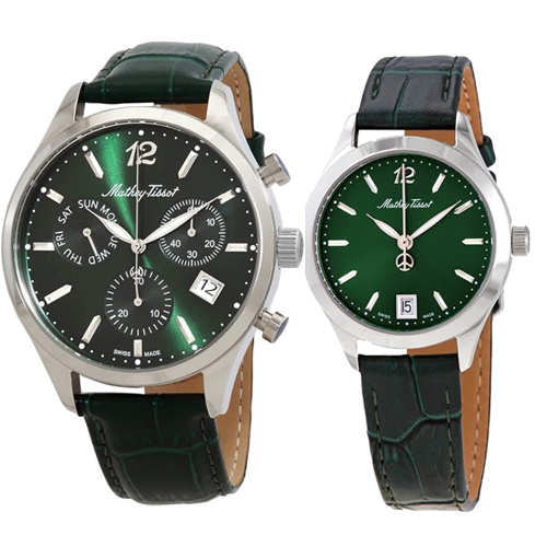 Đồng Hồ Mathey-Tissot Chính Hãng Nam Nữ H411CHALV D411AV Quartz Green Dial Couple Watch