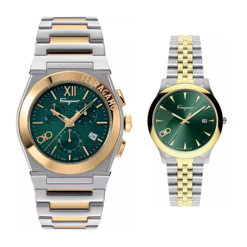 Đồng Hồ Salvatore Ferragamo Chính Hãng Nam Nữ SFMR00522 SFCV00219 Vega & Duo Green Dial Couple Watch
