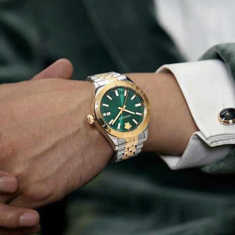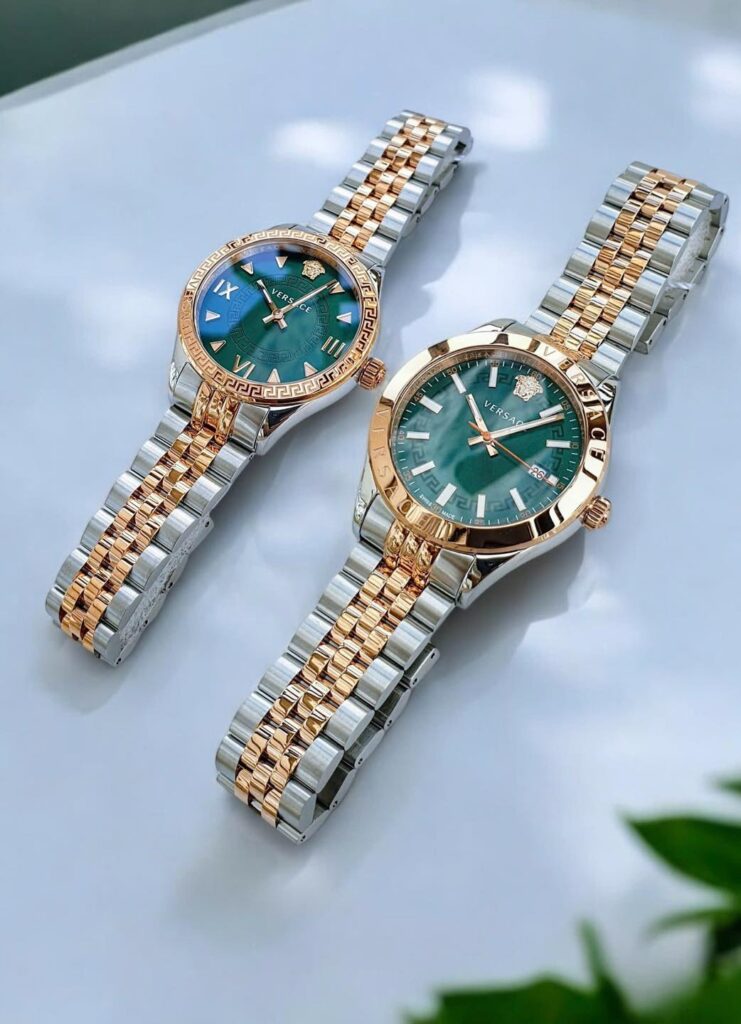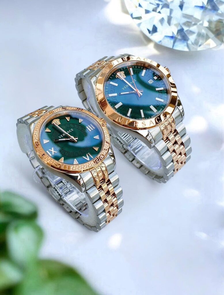 Đồng Hồ Versace Chính Hãng Nam Nữ VEVK00620 VE2S00422 Hellenyium Two-Tone Green Dial Couple Watch