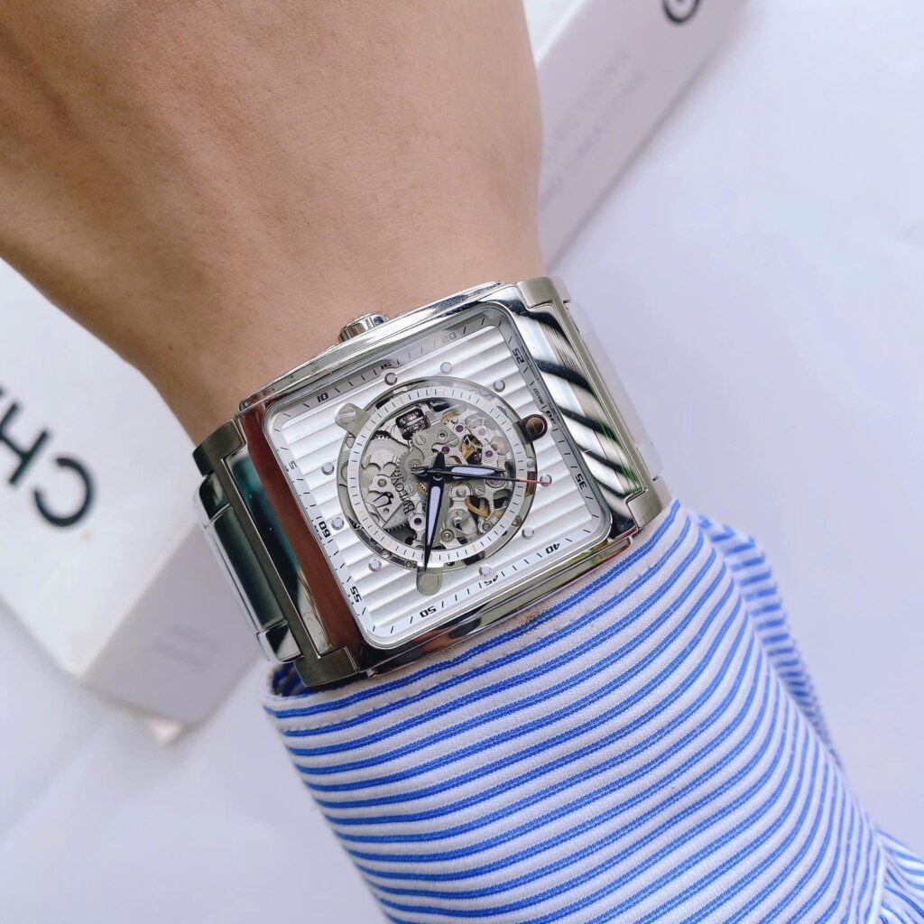 - Chỉ bảo hành thay thế mới cho những linh kiện, phụ tùng bị hỏng do lỗi của nhà sản xuất – không thay thế bằng một chiếc đồng hồ khác.Những đồng hồ có biểu hiện chạy sai giờ (nhanh hoặc chậm hơn), đứng máy và các lỗi khác thuộc về chức năng của bộ máy đồng hồ sẽ được áp dụng chế độ bảo hành của chúng tôi. Chế độ bảo hành của chúng tôi KHÔNG BAO GỒM các hư hại bên ngoài của đồng hồ.