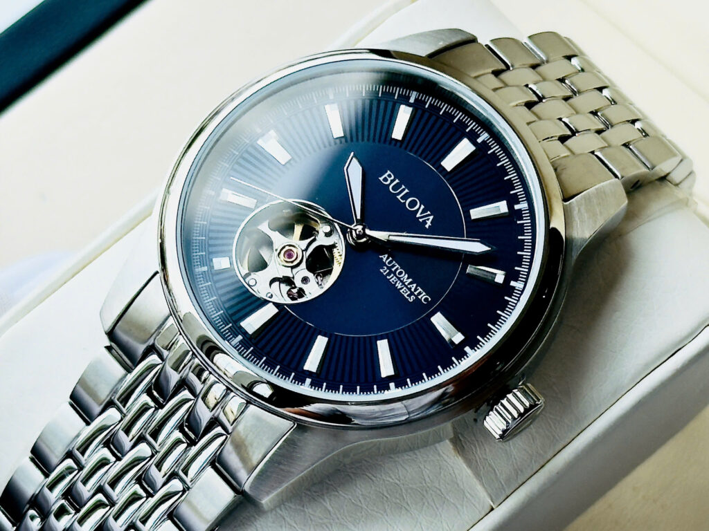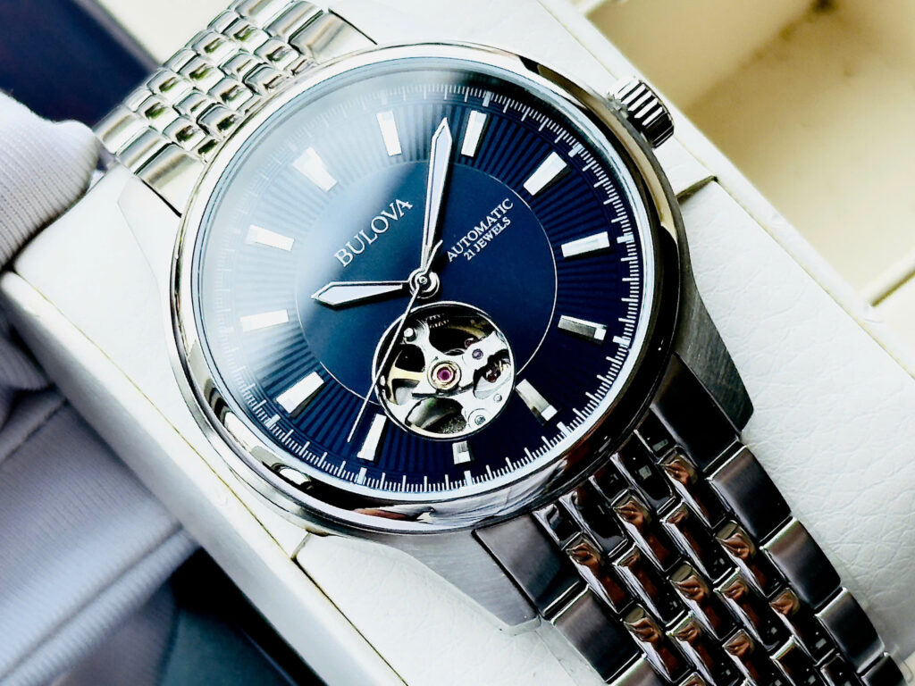 Bulova Automatic 96A189 – Sang trọng, tinh tế với thiết kế lộ cơ hở tim, dial xanh cực cuốn hút. Mẫu đồng hồ này được giới mộ điệu đánh giá là “ngon – bổ – rẻ” trong phân khúc của...
