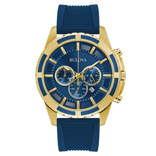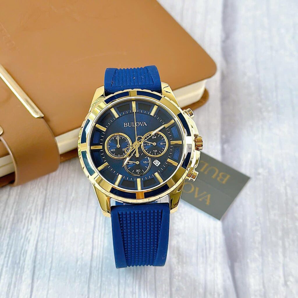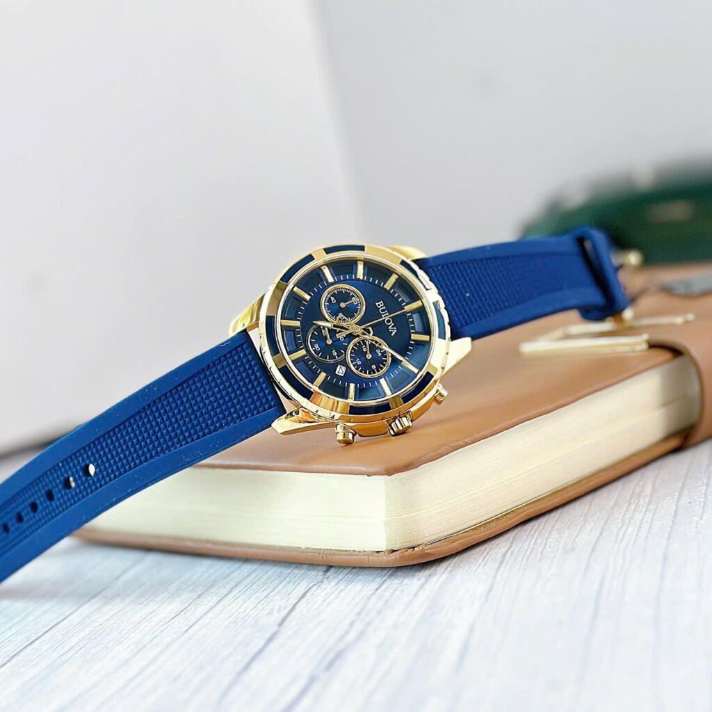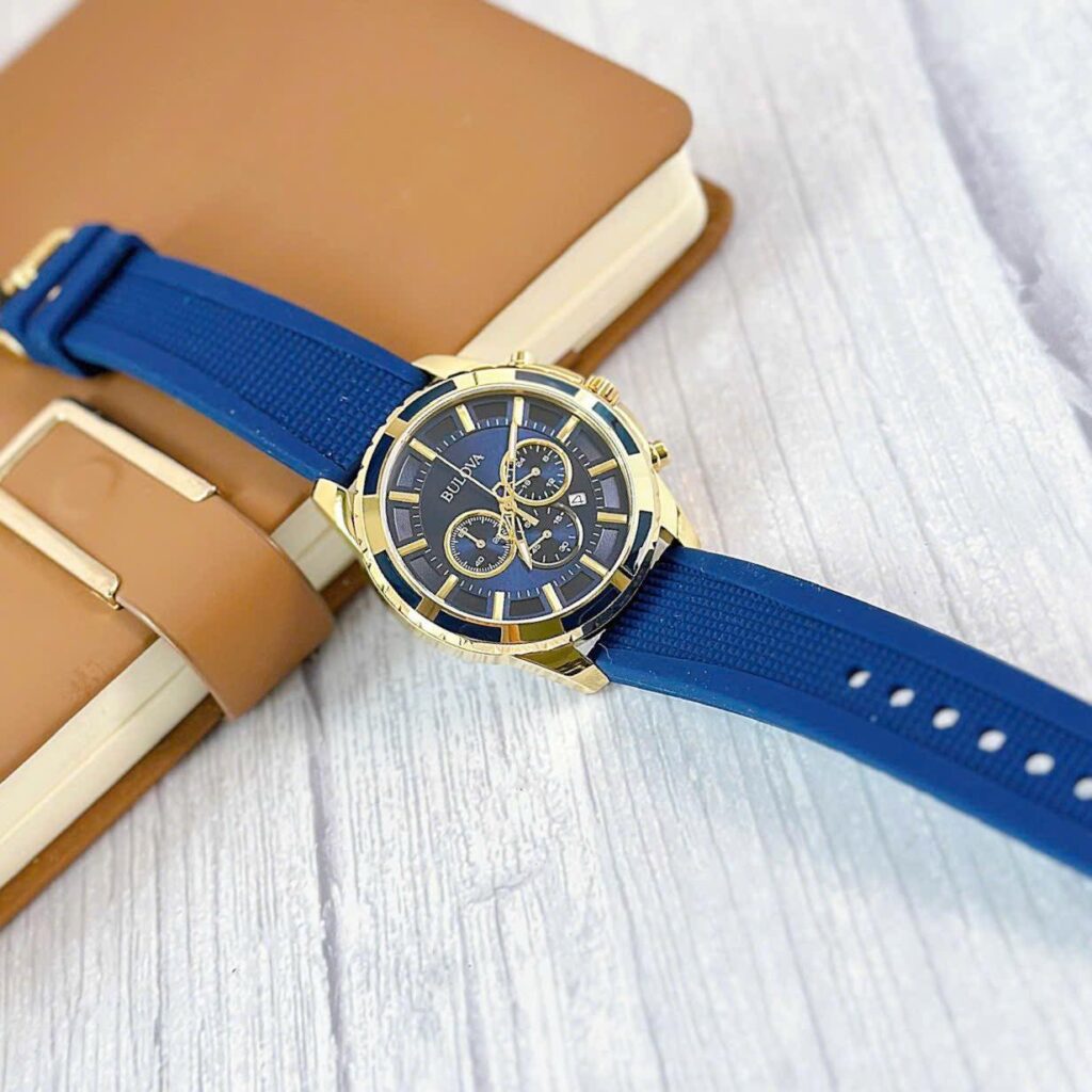 Đồng Hồ Bulova Chính Hãng Nam 97B193 Chronograph Calendar Blue Silicone Strap Watch