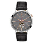 Đồng Hồ Bulova Chính Hãng Nam 98A187 Automatic Grey Dial Black Leather Men’s Watch