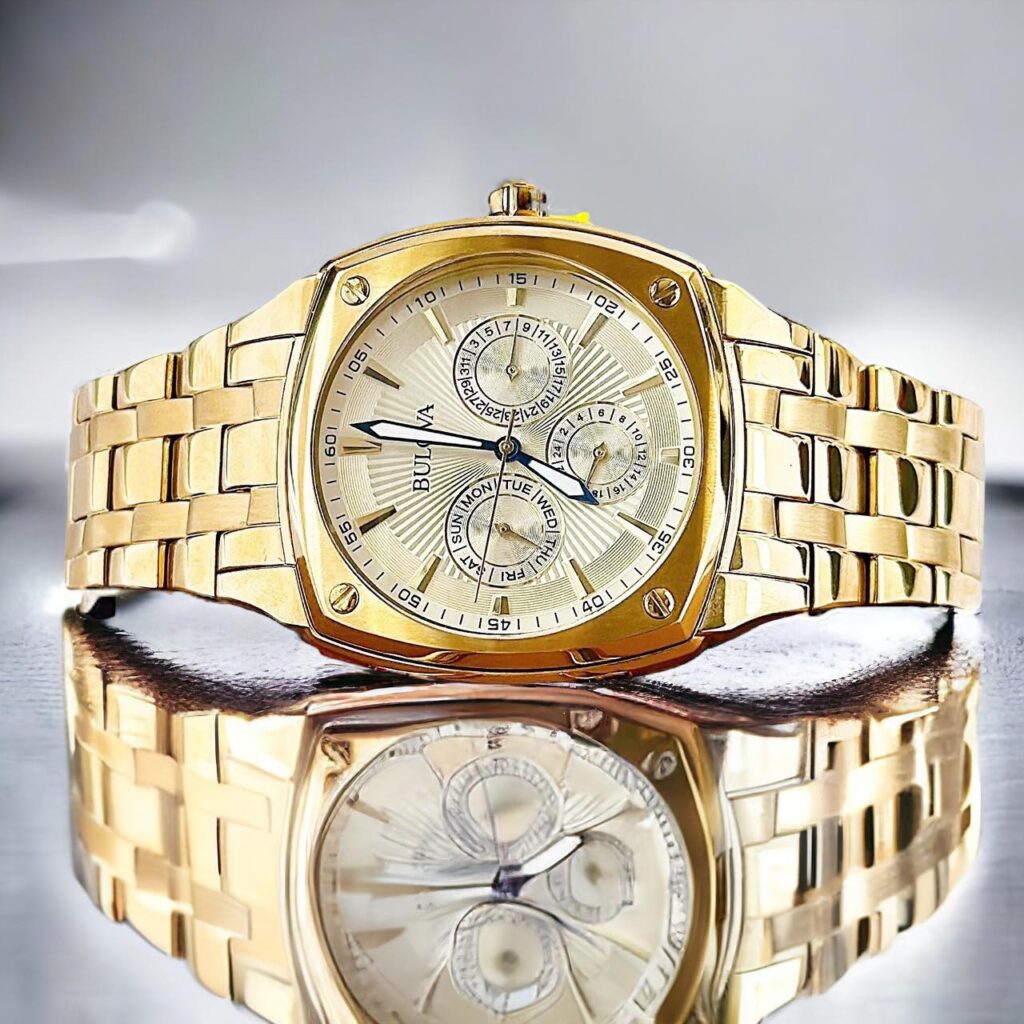 Đồng Hồ Bulova Nam Chính Hãng 97C105 Mens Watch Gold Tone Stainless Steel Multifunction Day Date 39mm