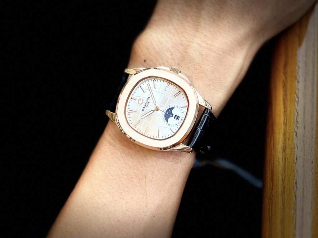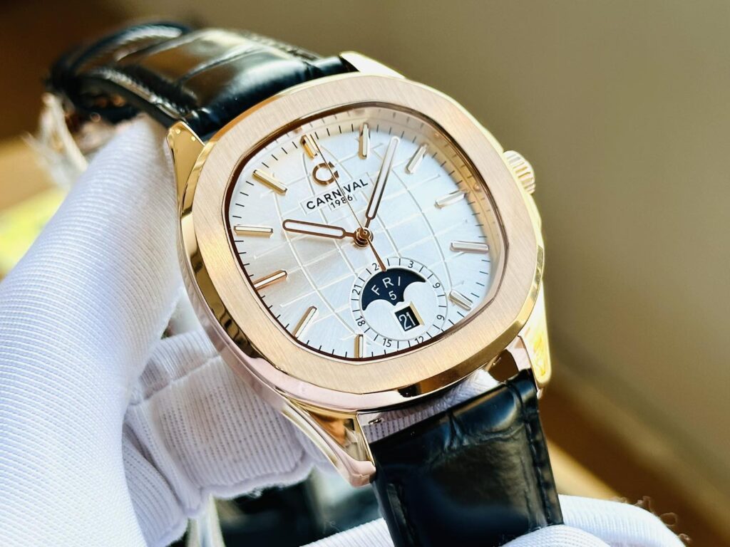 Đồng Hồ Carnival Chính Hãng Nam 8113G-VH-DD-T Aquanus Black Leather Men’s Watch