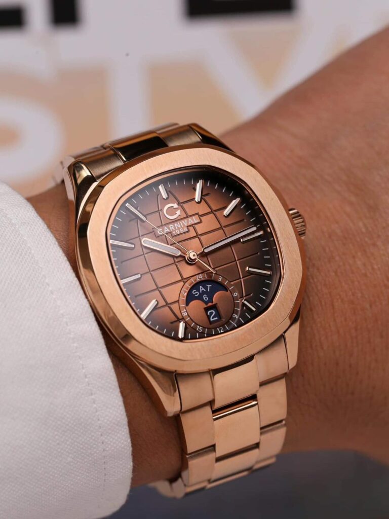 Đồng Hồ Carnival Chính Hãng Nam 8113G-VH-N Automatic Gold Rose Aquanus Men’s Watch