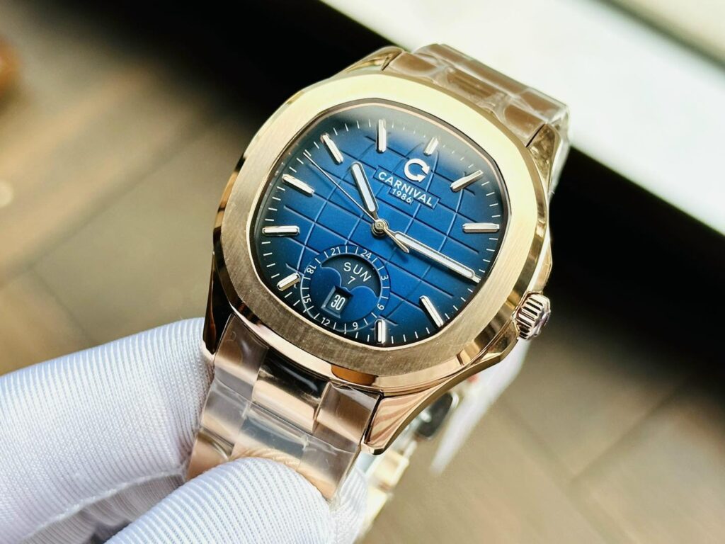Đồng Hồ Carnival Chính Hãng Nam 8113G-VH-XD Automatic Gold Rose Aquanus Men’s Watch