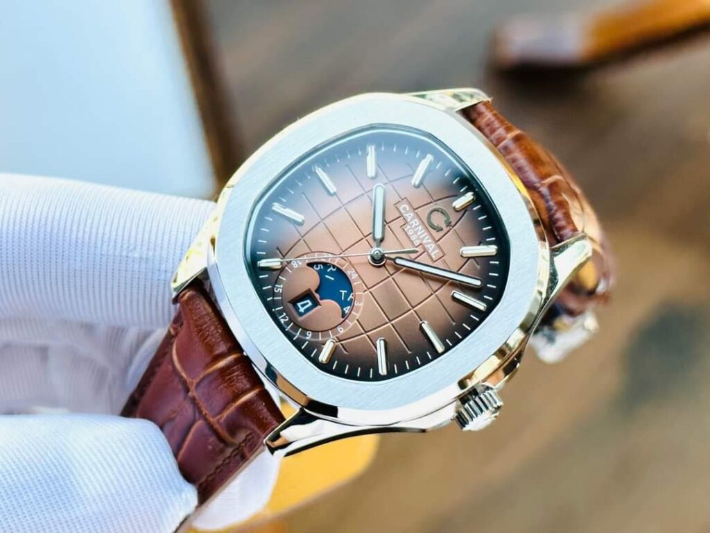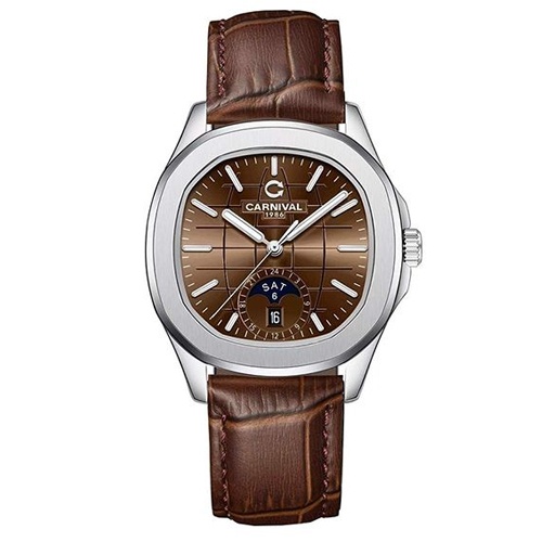 Đồng Hồ Carnival Chính Hãng Nam 8113G-VT-DD-N Aquanus Brown Leather Men’s Watch