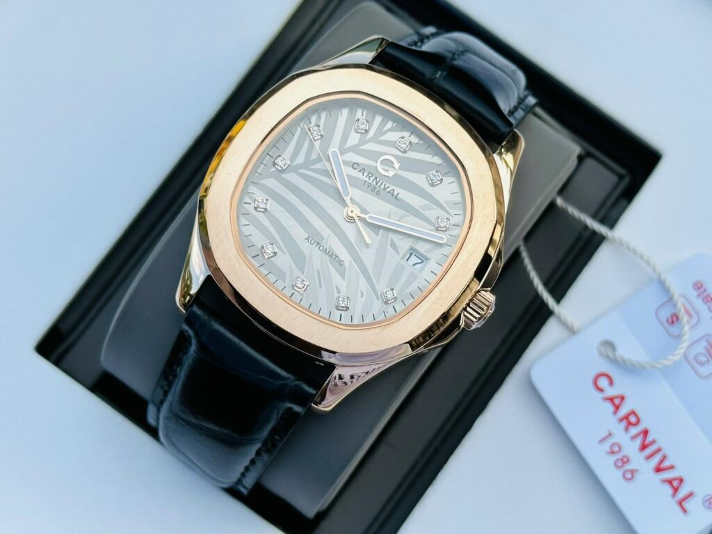 Đồng Hồ Carnival Chính Hãng Nam 8115G-VH-DD-N Aquanus Black Leather Men’s Watch