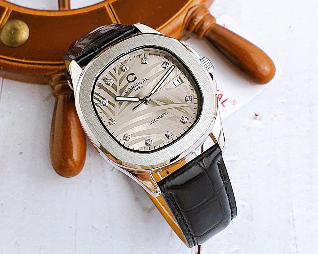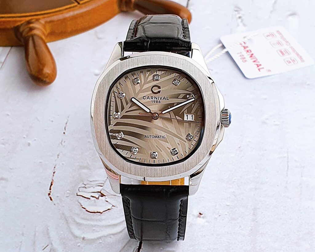 Đồng Hồ Carnival Chính Hãng Nam 8115G-VT-DD-N Aquanus Black Leather Men’s Watch