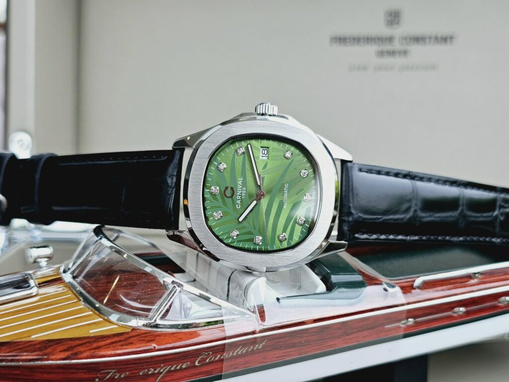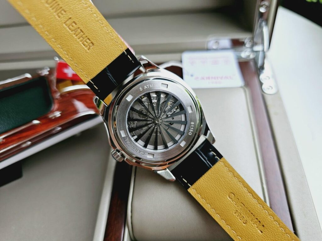 Đồng Hồ Carnival Chính Hãng Nam 8115G-VT-DD-XL Aquanus Black Leather Men’s Watch