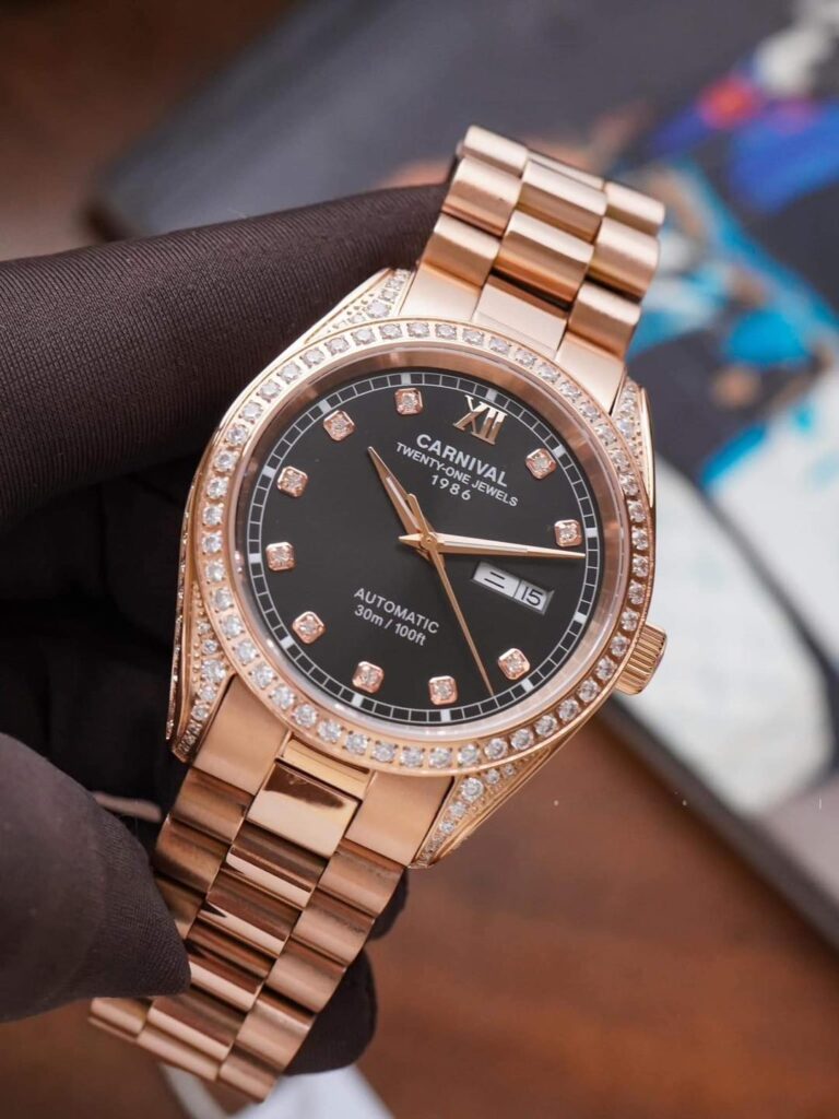 Đồng Hồ Carnival Chính Hãng Nam 8907G-VH-N Automatic Gold Rose Stainless Steel Men’s Watch