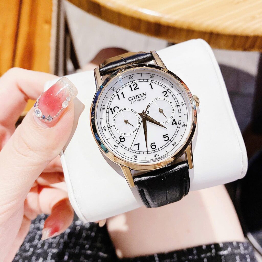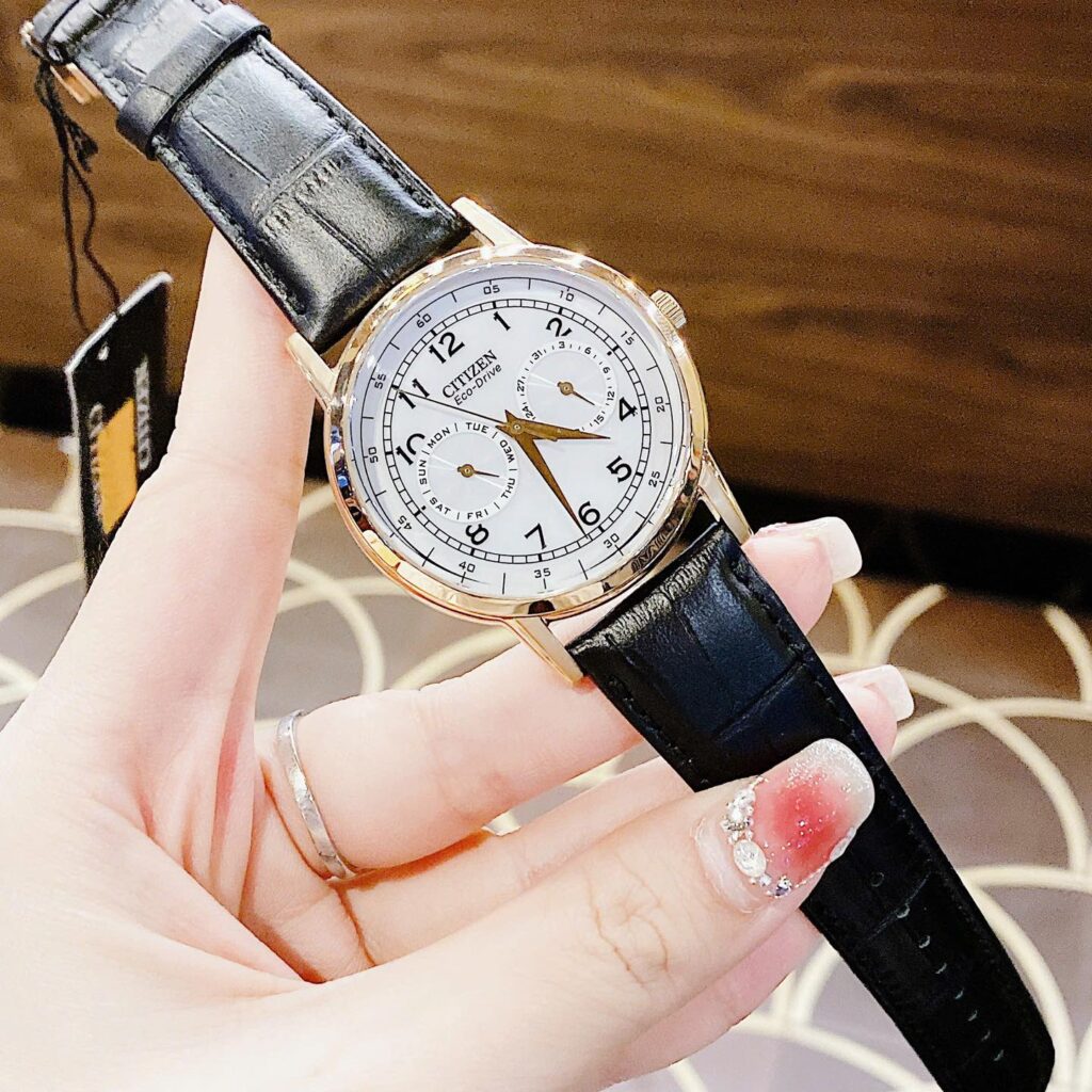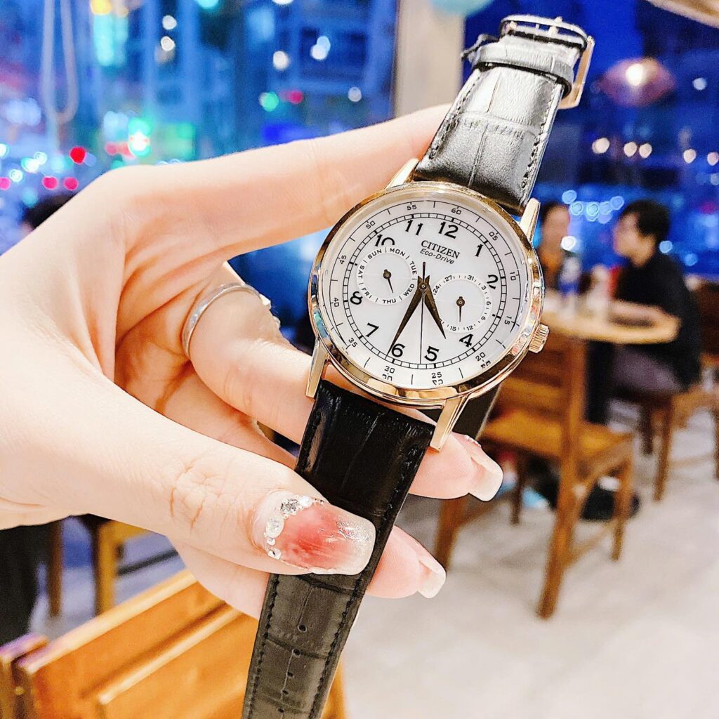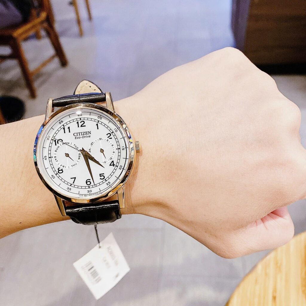 Đồng Hồ Citizen Chính Hãng Nam AO9003-16A Eco Drive White Dial Black Leather Men’s Watch