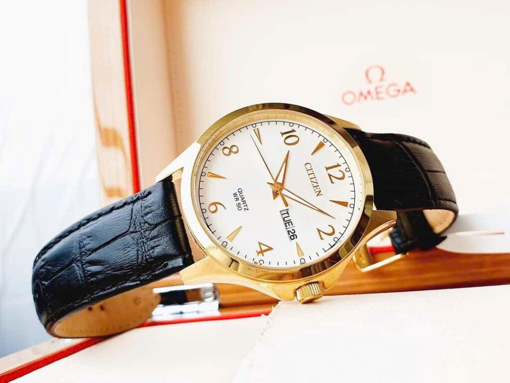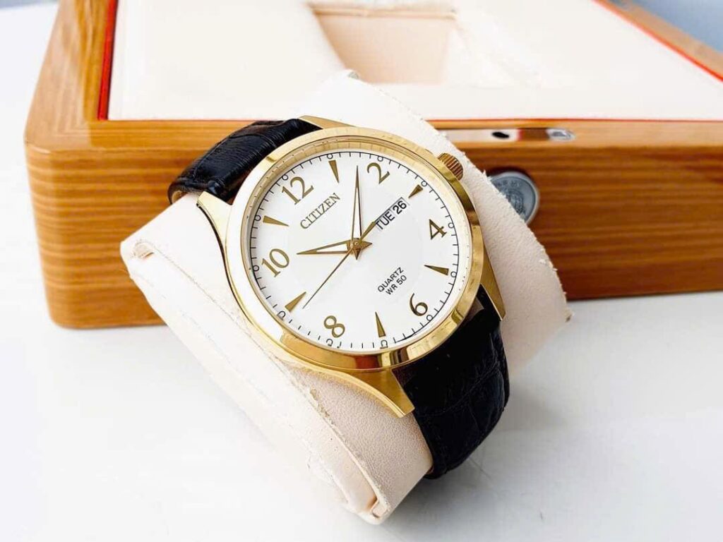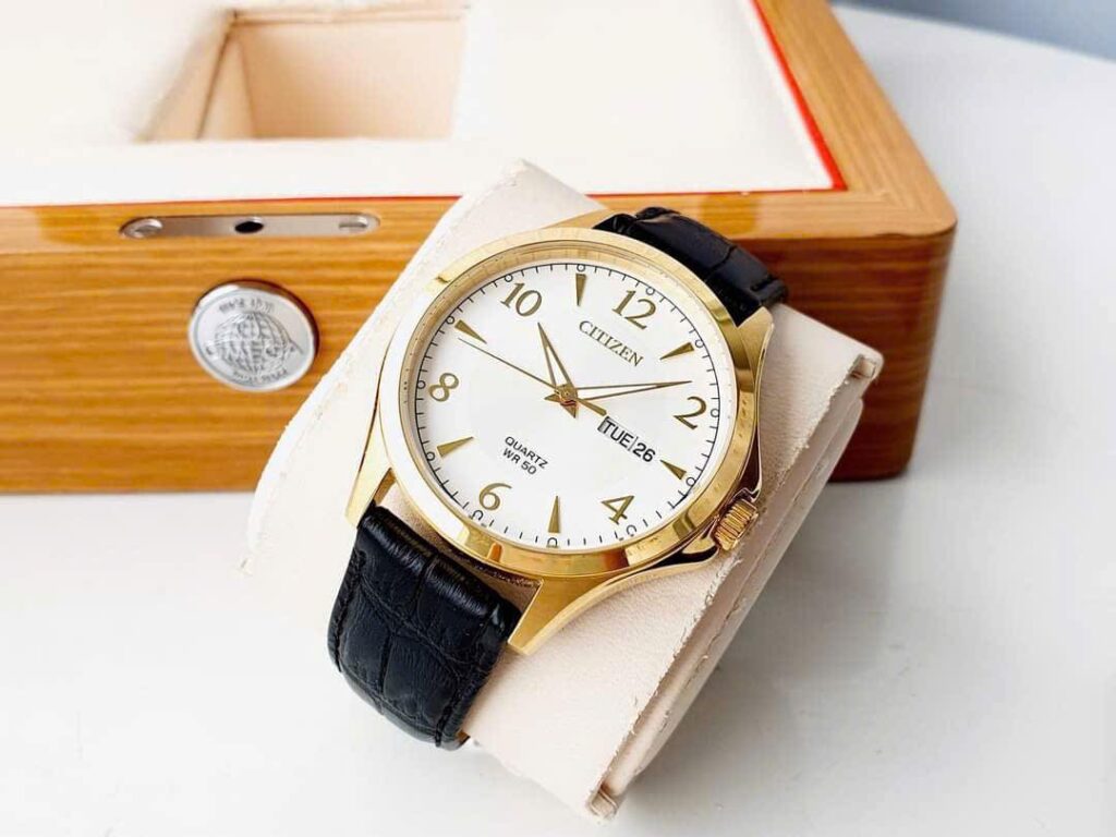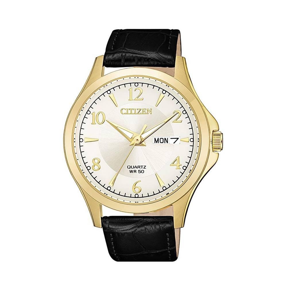 Đồng Hồ Citizen Chính Hãng Nam BF2003-25A Quartz Silver Dial Gold Case 41mm Black Leather Men’s Watch