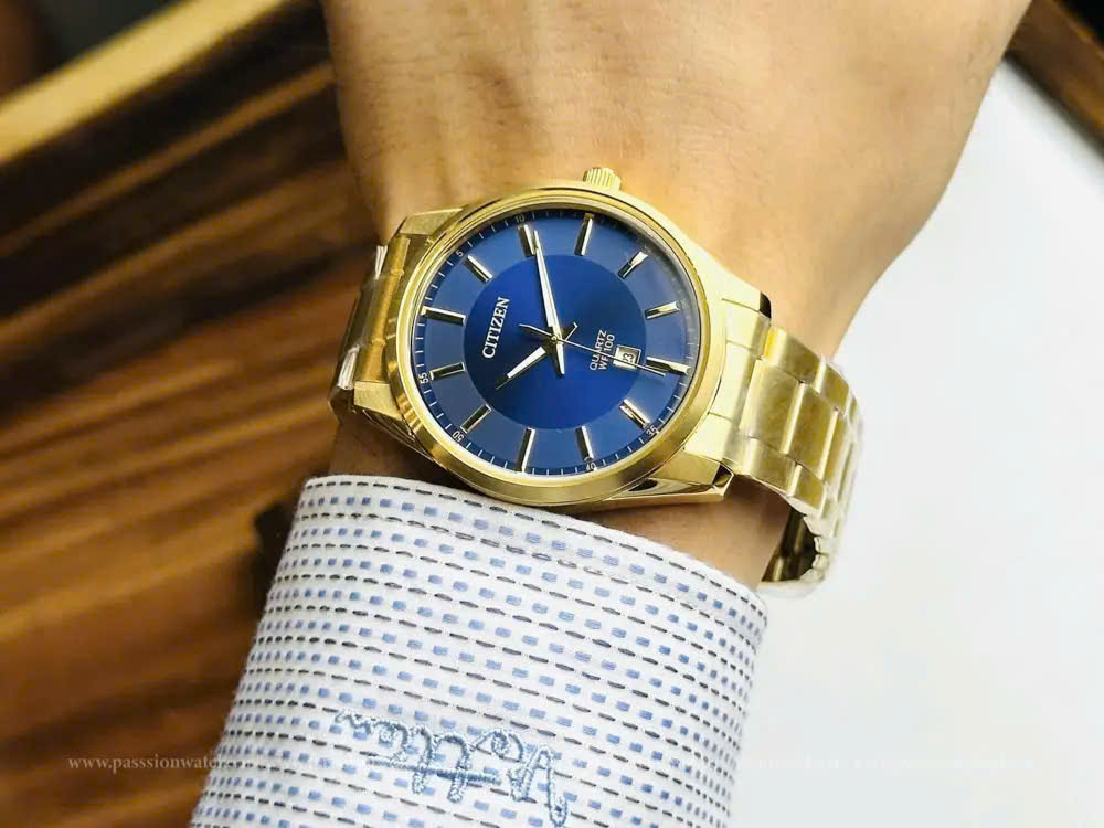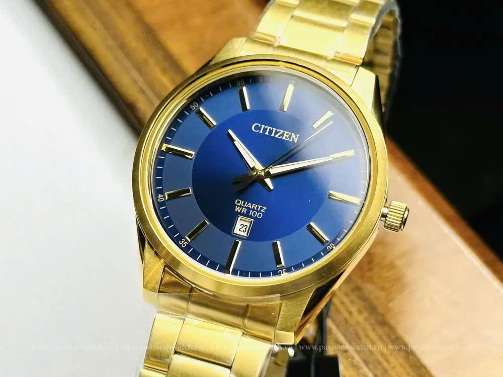 Đồng Hồ Citizen Chính Hãng Nam BI1032-58L Quartz Blue Dial Gold-tone Watch