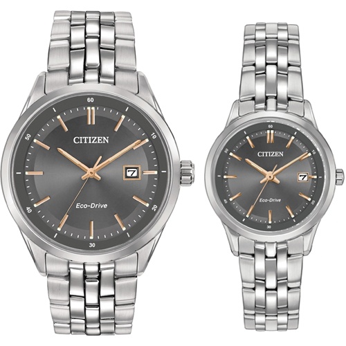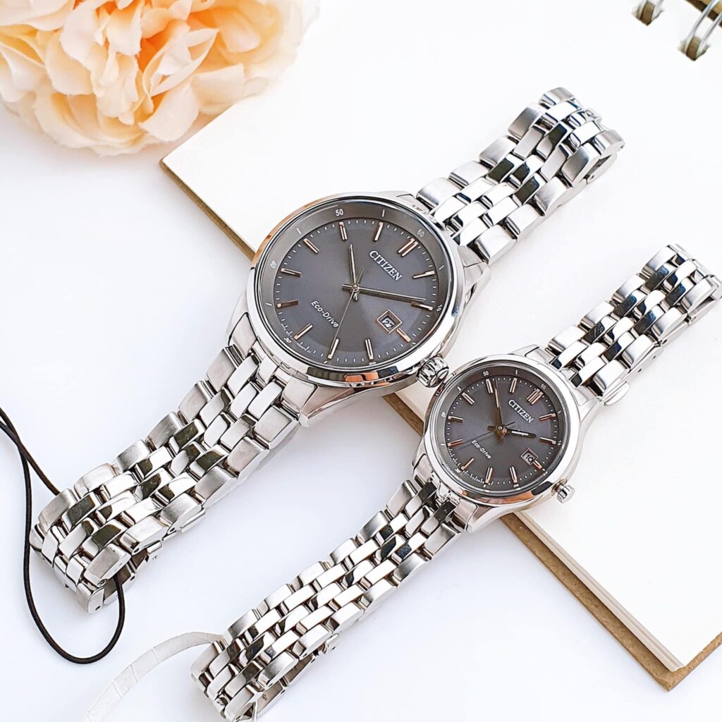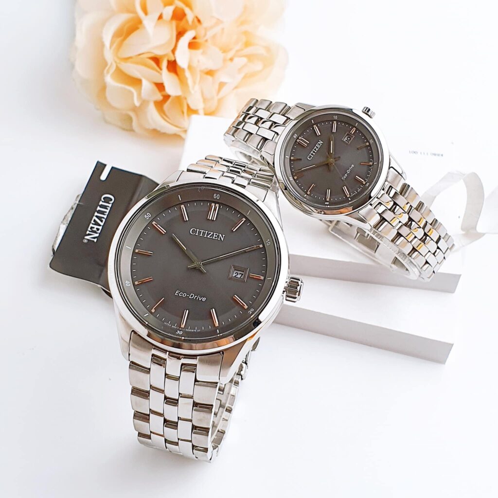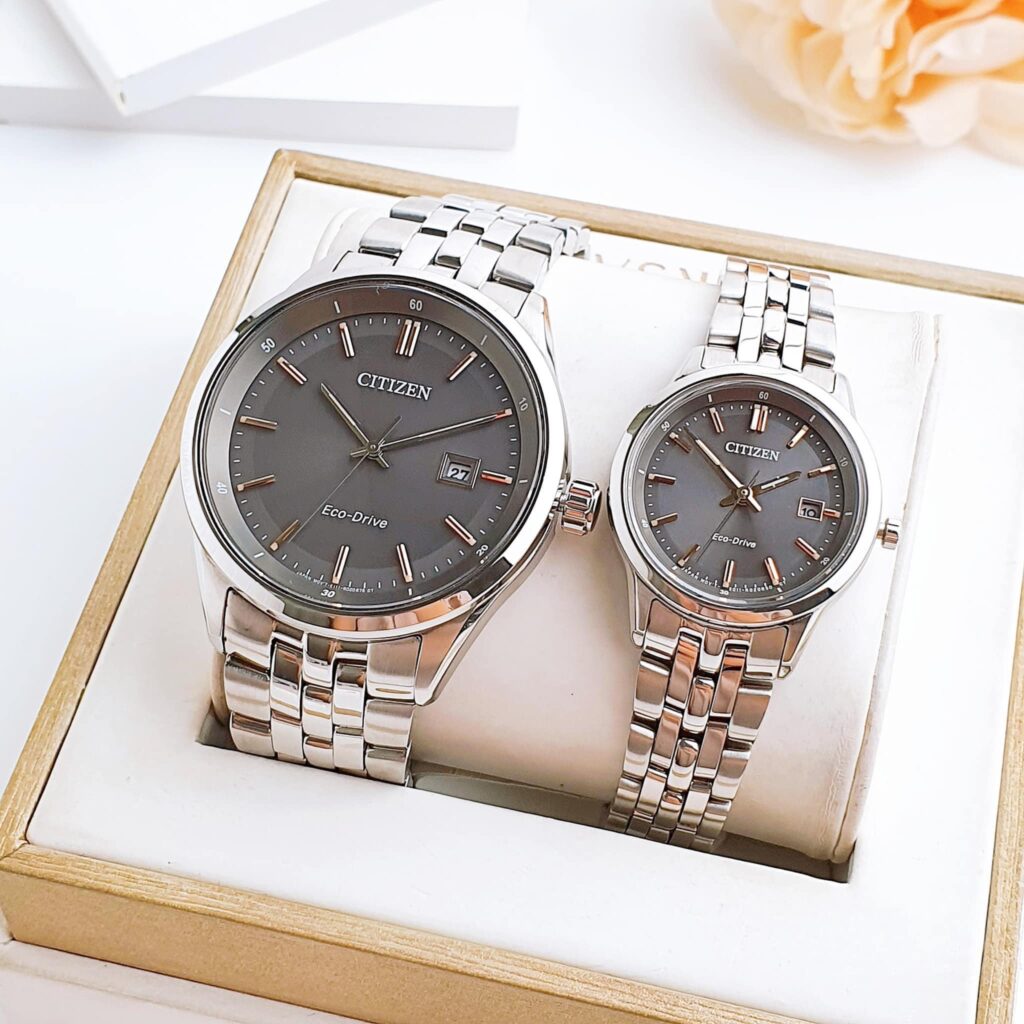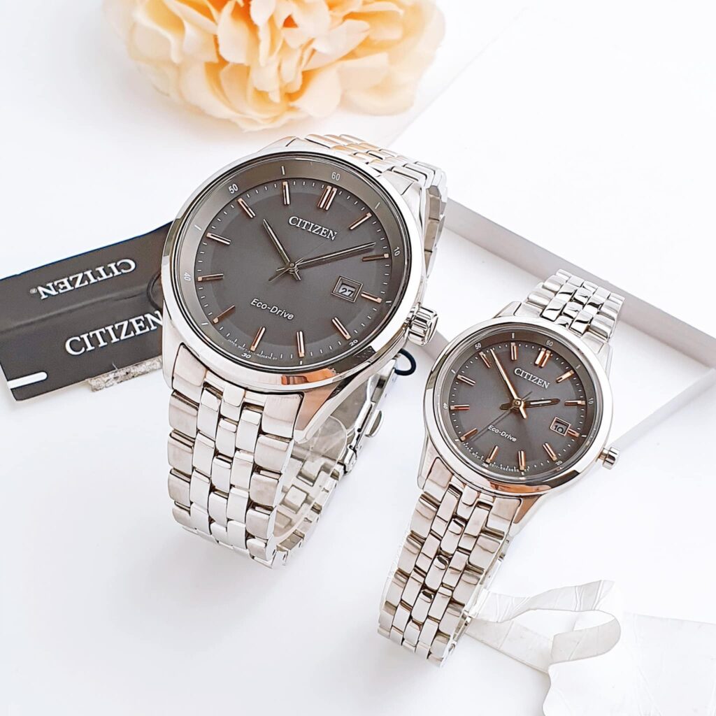 Đồng Hồ Citizen Chính Hãng Nam Nữ BM7251-53H EW2400-58H Eco-Drive Grey Dial Couple Watch