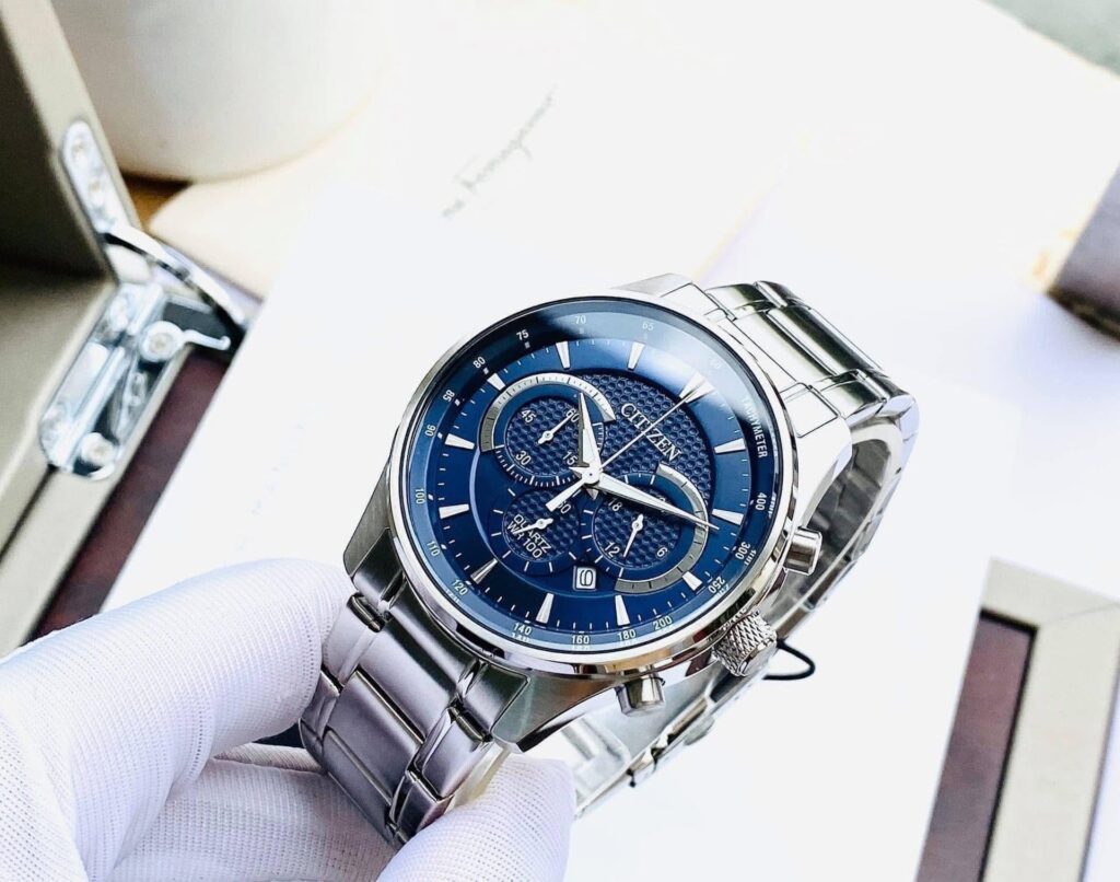 Đồng Hồ Citizen Nam Chính Hãng AN8190-51L Chronograph Blue Dial Silver Steel Men’s Watch