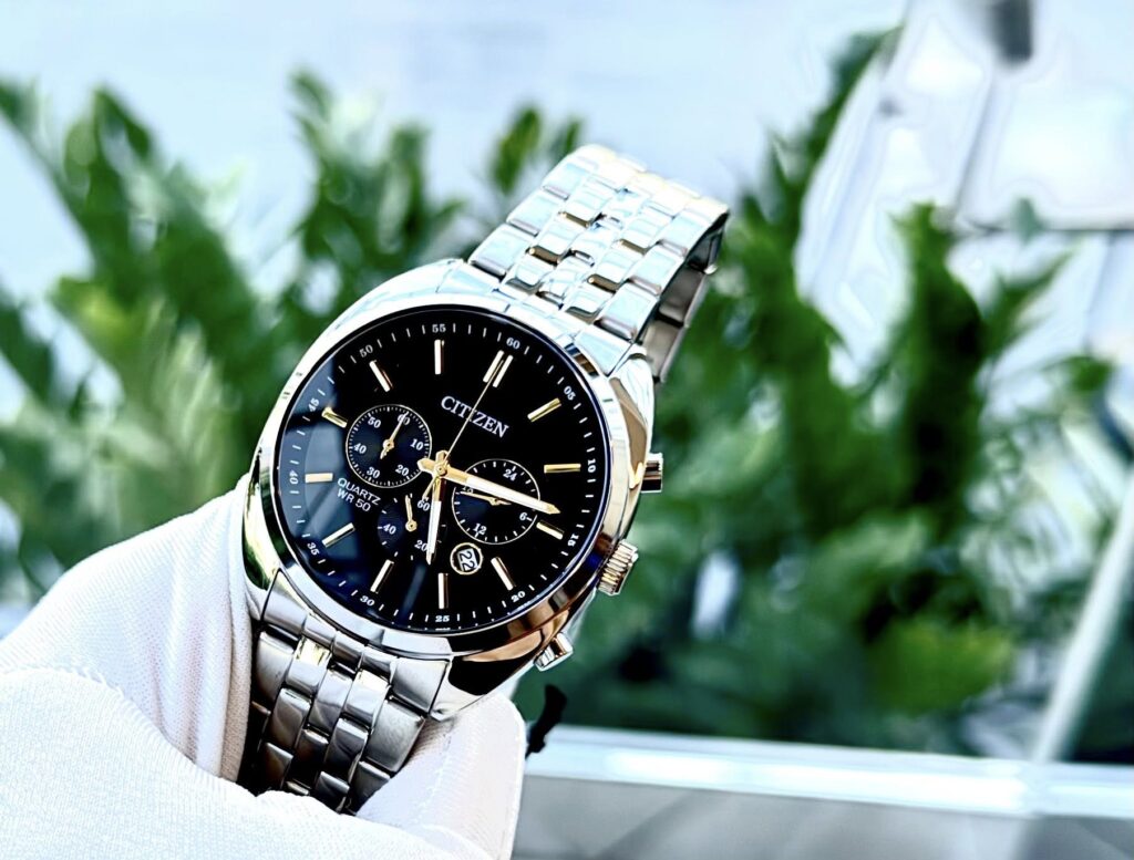 Đồng Hồ Citizen Nam Chính Hãng AN8210-56E Chronograph Black Dial Silver Steel Men’s Watch