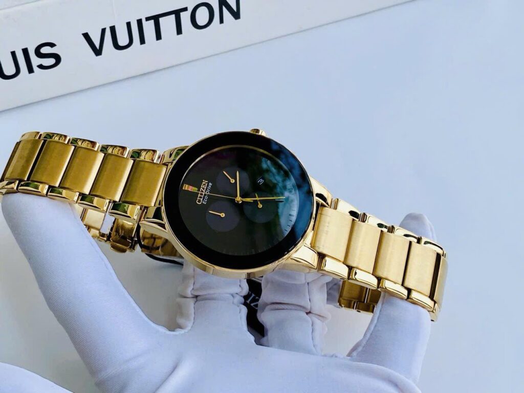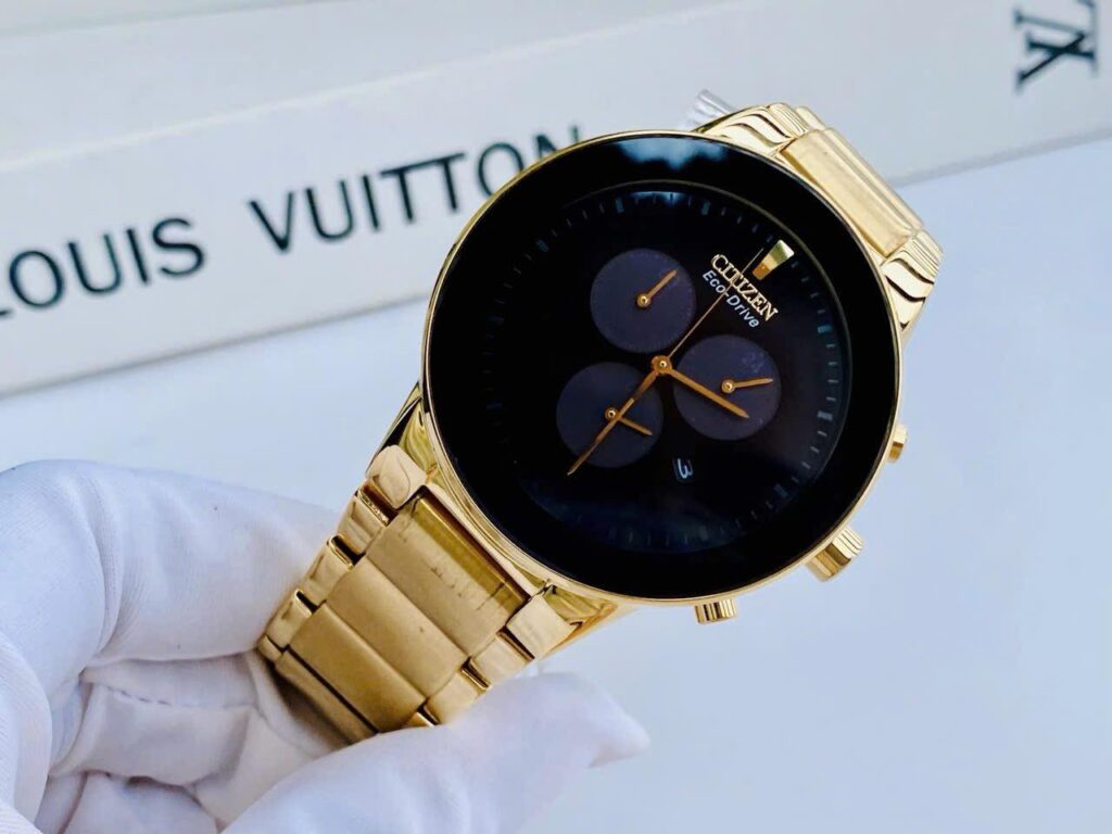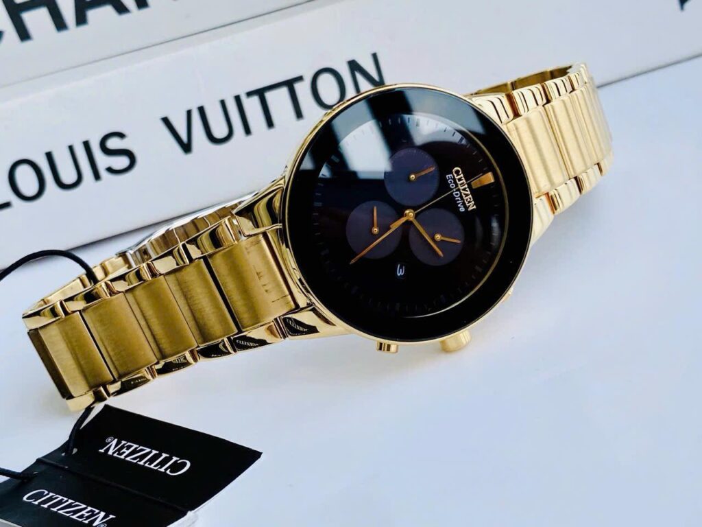 Đồng Hồ CITIZEN Nam Chính Hãng AT2242-55E Axiom Eco Drive Chronograph Black Dial Gold-tone Men’s Watch