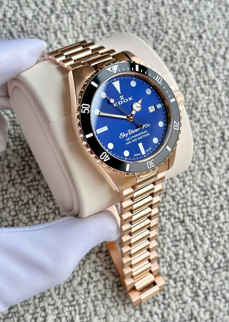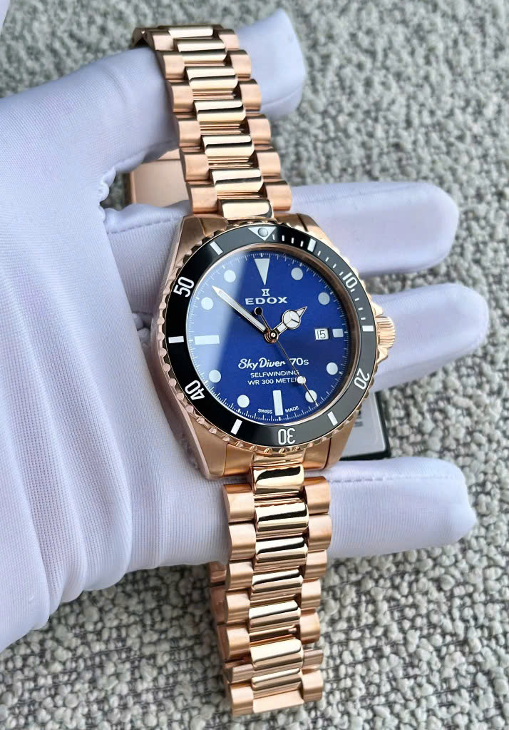 Đồng Hồ Edox Chính Hãng Nam Skydiver 70S Date Automatic Blue Dial Watch 80112-37RNM-BUI