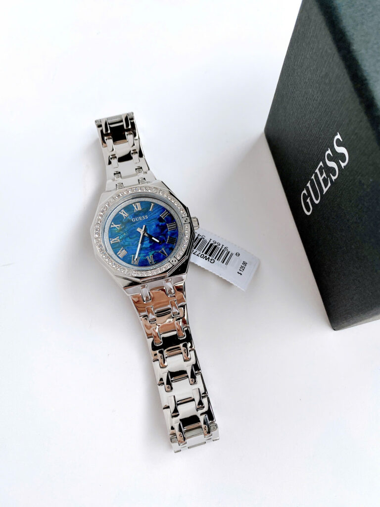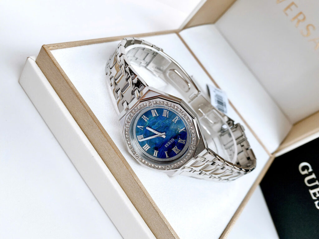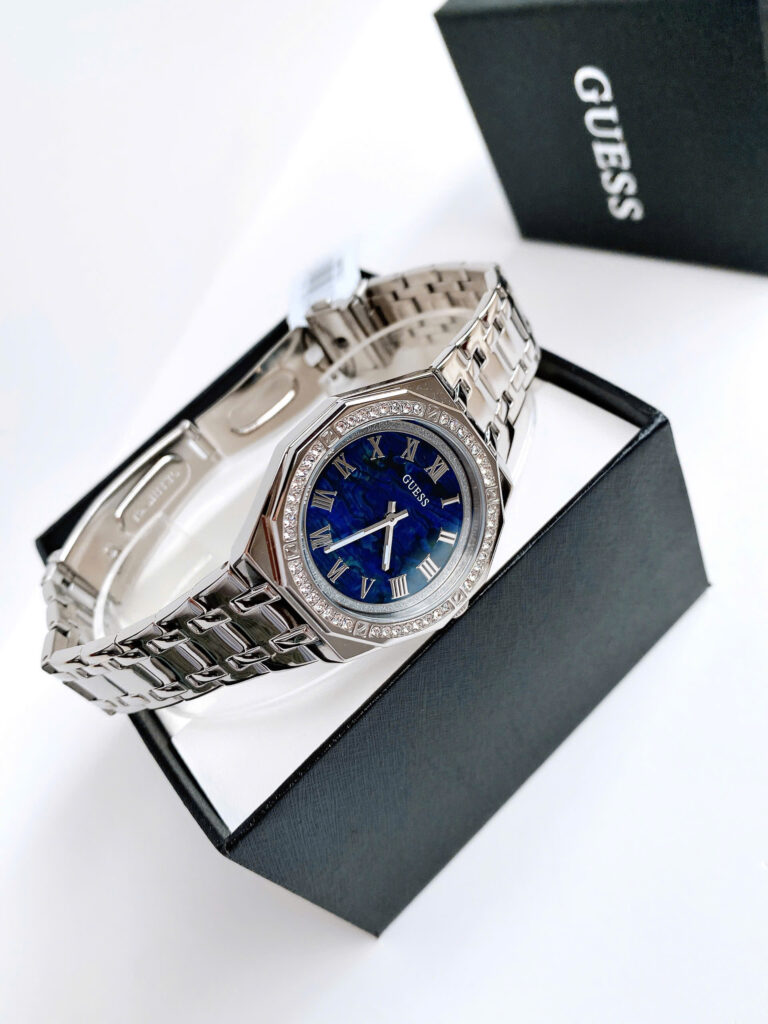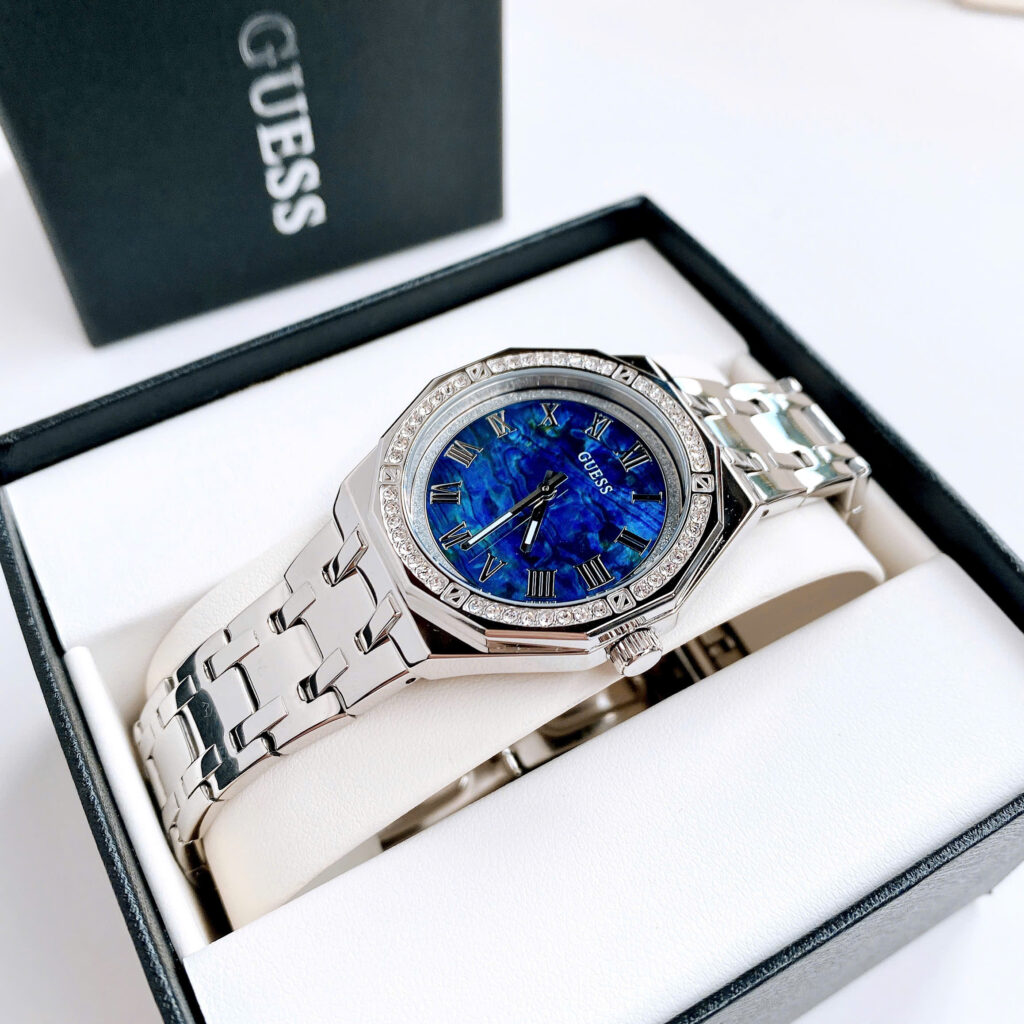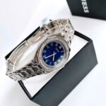 ✨ Hàng có sẵn – Guess bạc đính đá quanh viền mặt ✨ 👉 Thiết kế trẻ trung, nổi bật với mặt đa giác độc đáo lạ mắt.👉 Case 36mm – size dễ đeo, phù hợp nhiều dáng cổ tay.👉...