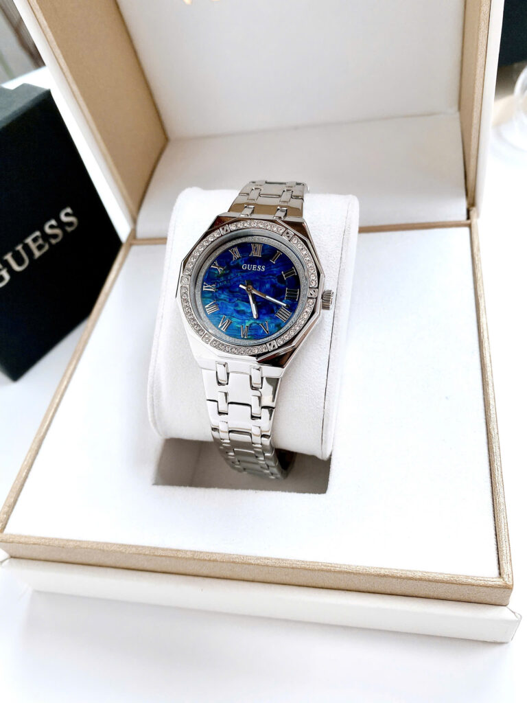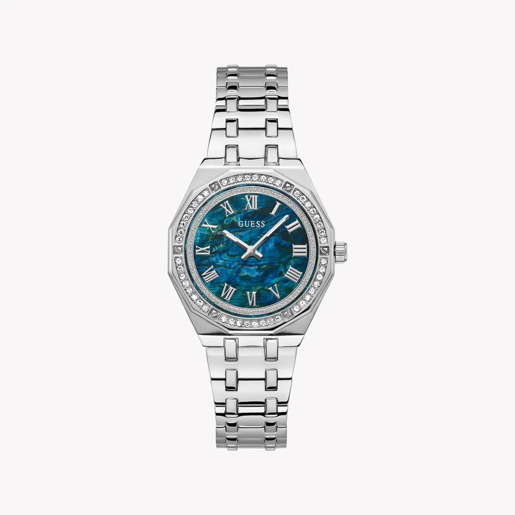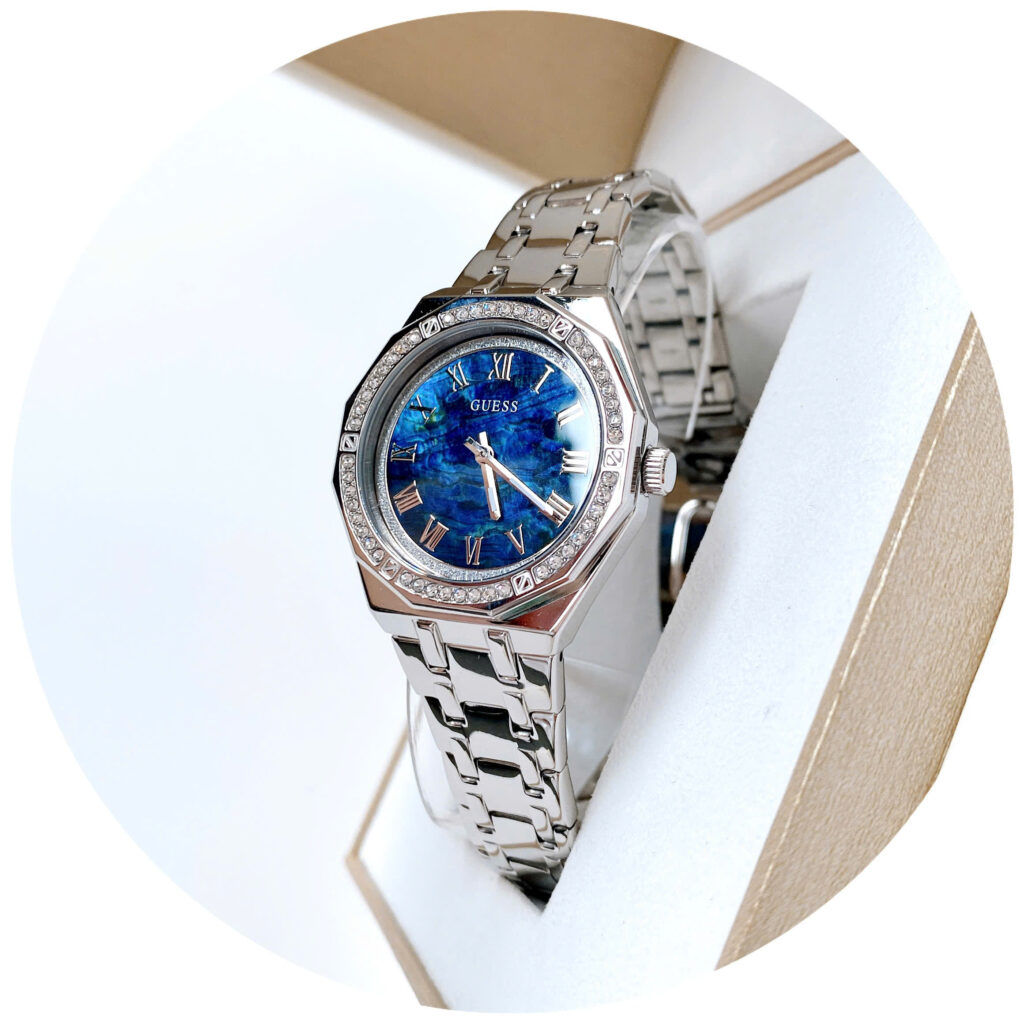 ✨ Hàng có sẵn – Guess bạc đính đá quanh viền mặt ✨ 👉 Thiết kế trẻ trung, nổi bật với mặt đa giác độc đáo lạ mắt.👉 Case 36mm – size dễ đeo, phù hợp nhiều dáng cổ tay.👉...
