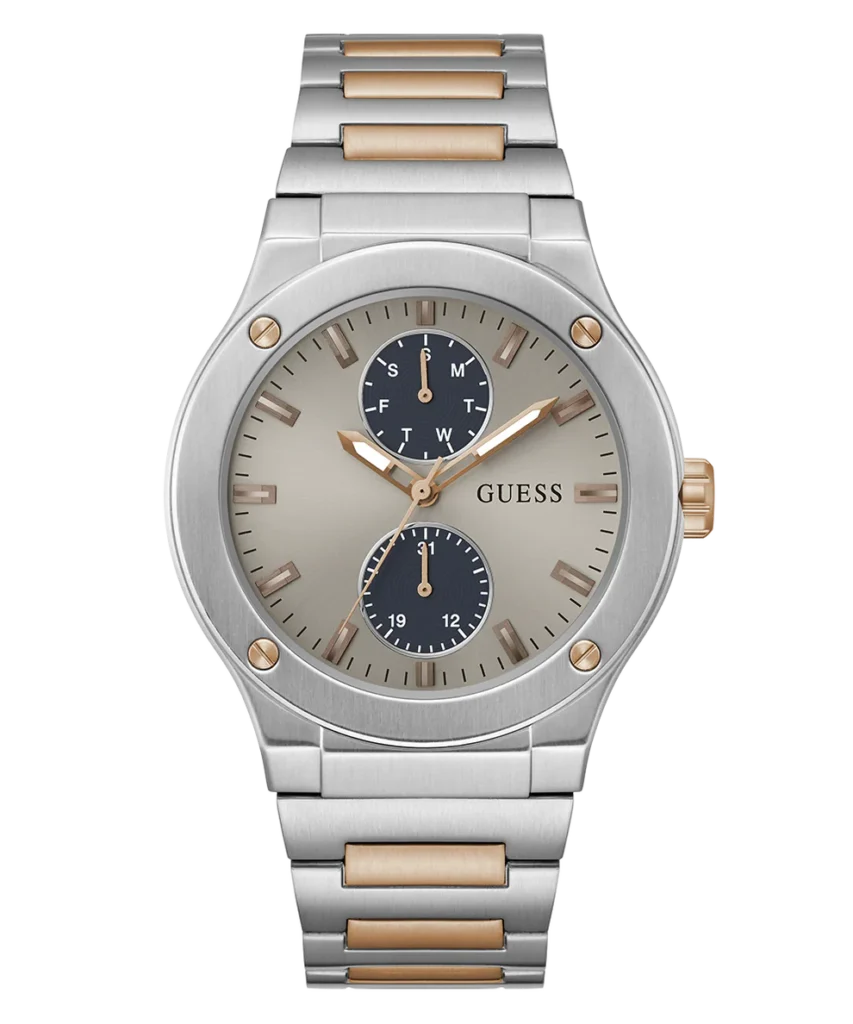 🕰 GUESS Silver and Rose Gold-Tone Multifunction Watch – Thiết kế nổi bật, đẹp không kém gì các mẫu cao cấp như F80, cực kỳ đáng sở hữu cho các anh muốn tìm một mẫu đồng hồ sang trọng, đậm...