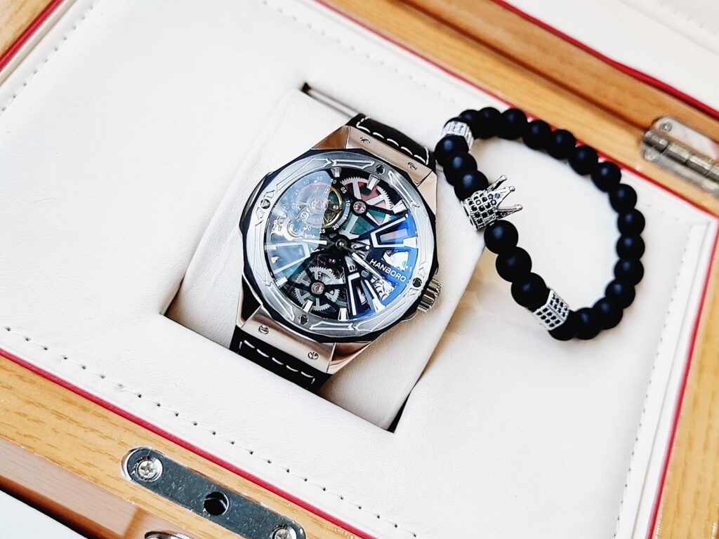 Đồng Hồ Hanboro Chính Hãng Nam Black Leather Men’s Watch