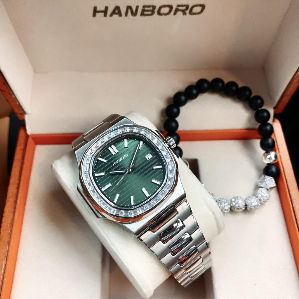 Đồng Hồ Hanboro Chính Hãng Nam Green Dial Silver Stainless Steel Men’s Watch