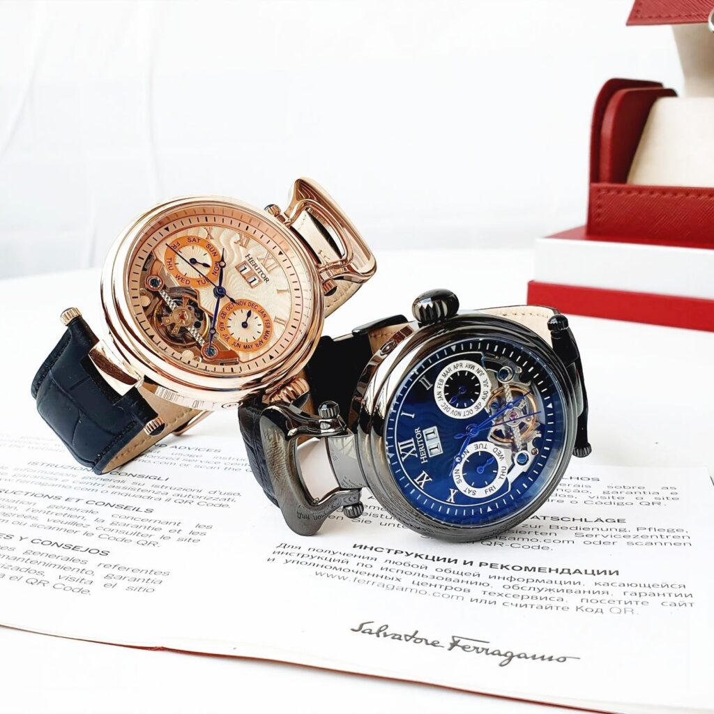 Đồng Hồ Heritor Chính Hãng Nam HERHR3307 Ganzi Semi-Skeleton Leather Men’s Watch