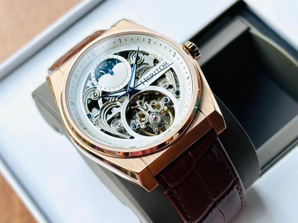 Đồng Hồ Heritor Chính Hãng Nam HERHS3005 Daxton Brown Leather Men’s Watch