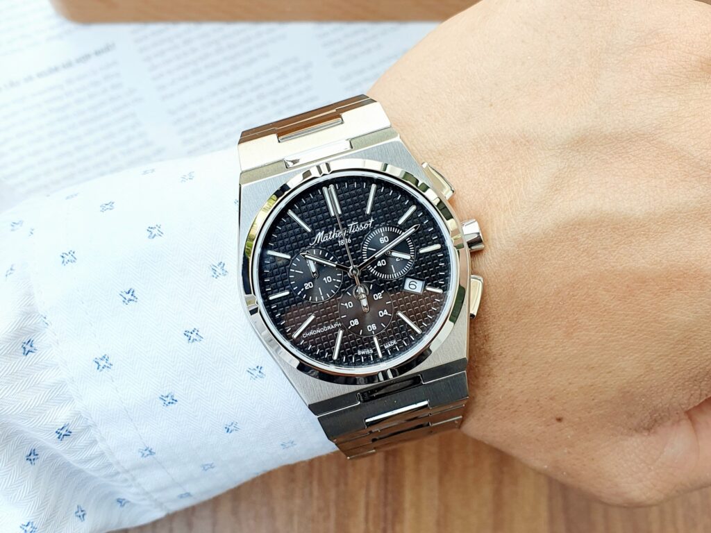 Mathey-Tissot PRX Collection Chronograph H117CHAN – Di sản thiết kế thập niên 70 tái xuất đầy mạnh mẽ Mathey-Tissot PRX H117CHAN là mẫu đồng hồ chronograph vừa ra mắt, thuộc bộ sưu tập đình đám PRX – mang đậm phong cách thiết kế đặc trưng cuối những năm 1970. Đây là kiểu dáng đã trở thành biểu tượng trong ngành chế tác đồng hồ, được nhiều thương hiệu xa xỉ như Audemars Piguet gìn giữ và phát triển cho đến ngày nay. Với vẻ đẹp vừa hoài cổ vừa hiện đại, mẫu đồng hồ này chắc chắn sẽ làm hài lòng cả những tín đồ khó tính nhất. Mặt số được thiết kế tinh xảo, tạo hiệu ứng ánh sáng bắt mắt, nổi bật cùng các chi tiết chronograph mạnh mẽ, mang lại cảm giác thể thao nhưng vẫn thanh lịch. Kích thước 40mm cân đối, phù hợp với phần lớn cổ tay nam giới, tạo cảm giác đeo vừa vặn và sang trọng. Đồng hồ sử dụng kính sapphire nguyên khối – loại kính cao cấp có khả năng chống trầy xước vượt trội, cùng với thân vỏ và dây đeo bằng thép không gỉ 316L, mang đến độ bền cao và vẻ ngoài bóng bẩy, sang trọng. Hoạt động nhờ bộ máy Swiss Made chính xác và bền bỉ, Mathey-Tissot H117CHAN không chỉ là một công cụ đo thời gian, mà còn là biểu tượng của gu thẩm mỹ tinh tế và sự đầu tư cho phong cách sống đẳng cấp.