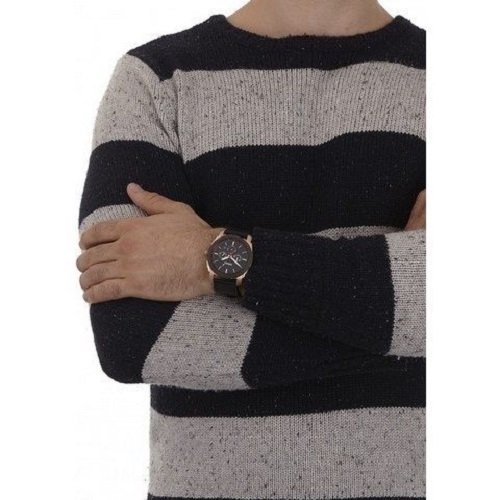 Đồng hồ nam Fossil FS5120 là sự kết hợp hoàn hảo giữa phong cách thể thao và vẻ ngoài sang trọng. Với kích thước mặt số lớn 45mm và độ dày 13mm, chiếc đồng hồ mang đến cảm giác mạnh mẽ, nam tính cho cổ tay. Mặt số màu đen lịch lãm nổi bật với viền vàng hồng thời thượng, tạo điểm nhấn sang trọng và đẳng cấp. Đồng hồ được trang bị chức năng chronograph (đếm giờ thể thao) tiện lợi, phù hợp cho các hoạt động vận động và thể thao hàng ngày. Dây da màu đen mềm mại, ôm sát cổ tay, mang lại sự thoải mái khi đeo lâu dài. Fossil FS5120 là lựa chọn lý tưởng cho quý ông yêu thích phong cách hiện đại pha chút cổ điển đầy cuốn hút.