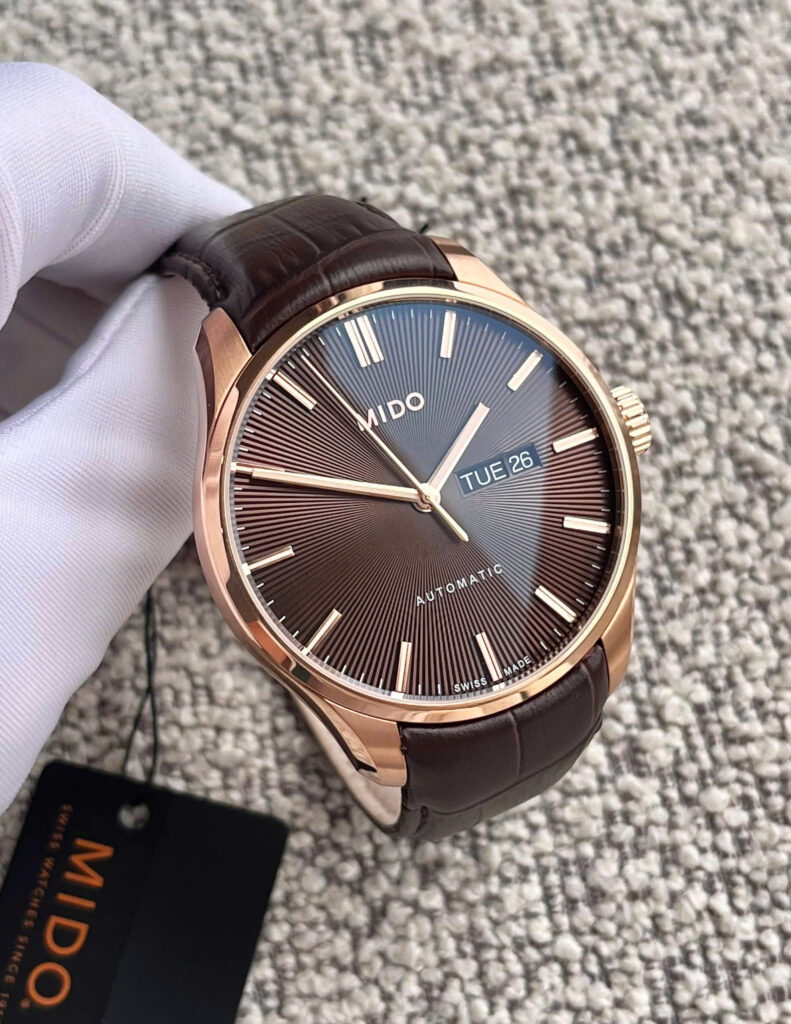 Mido Belluna Sunray Automatic M024.630.36.291.00 – mẫu đồng hồ automatic nổi bật với tone màu chocolate ánh sunray tuyệt đẹp, mang đến vẻ ngoài vừa cổ điển vừa hiện đại, đậm chất thanh lịch của đồng hồ Thụy Sỹ chính...