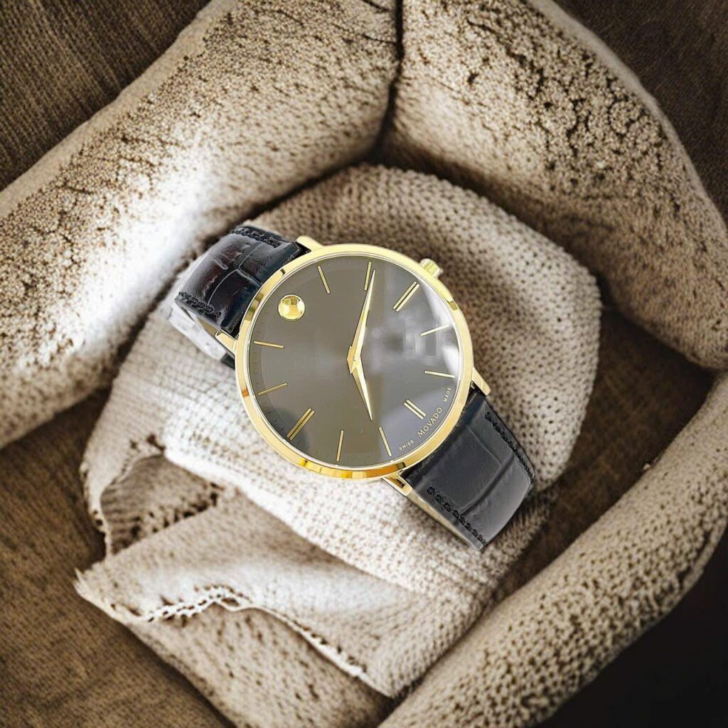 Đồng Hồ Movado Chính Hãng Nam 0607173 Ultra Slim Black Sunray Dial Men’s Watch