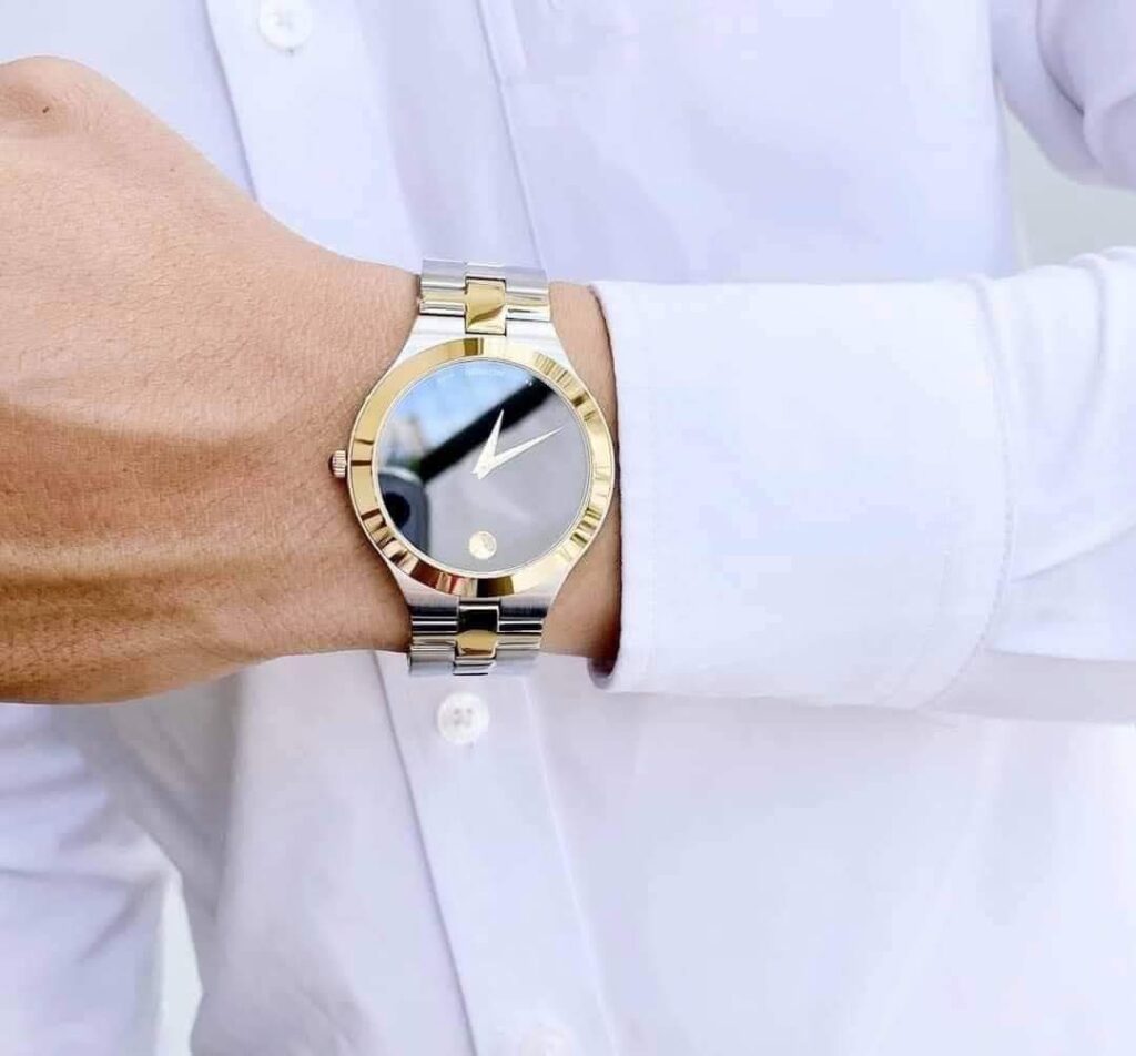 Đồng Hồ Movado Chính Hãng Nam 0607443 Juro Quartz Black Dial Two-tone Watch Men’s Watch