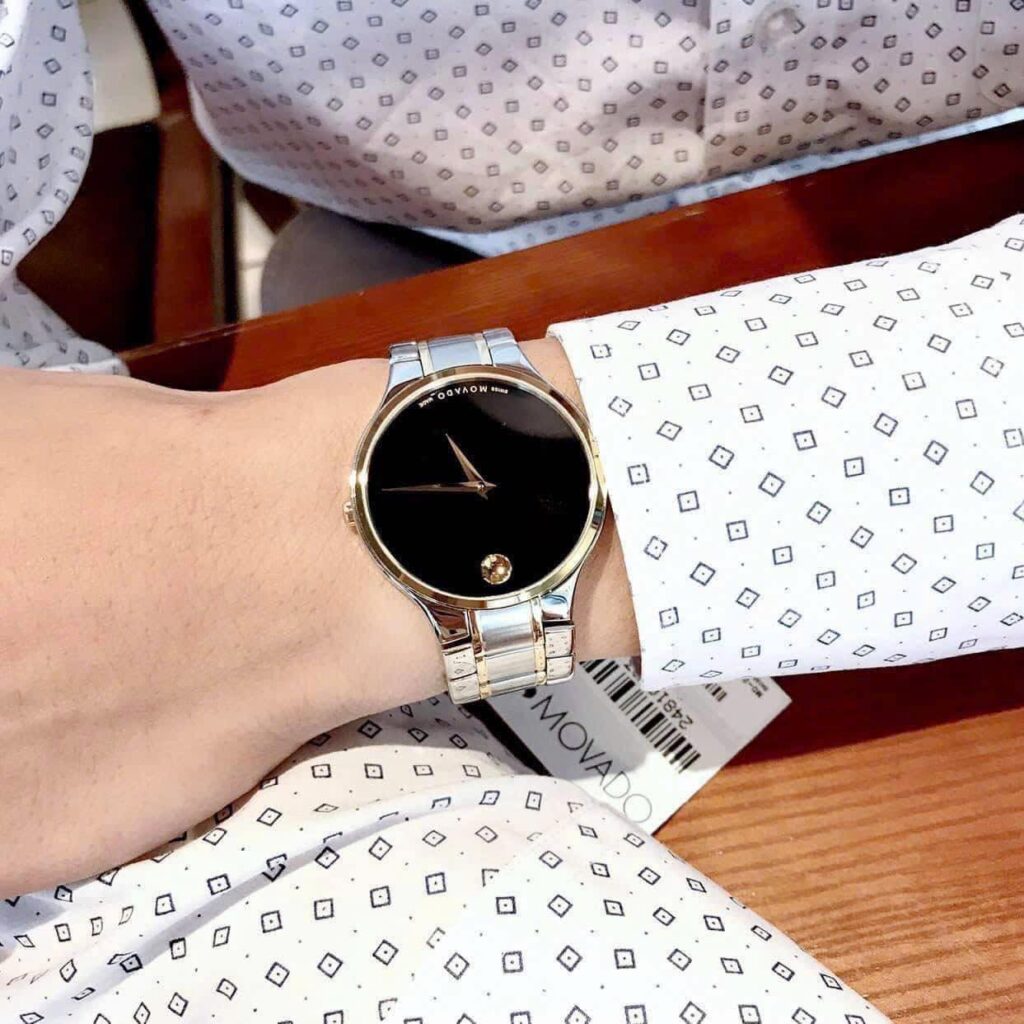 Đồng Hồ Movado Nam Chính Hãng 0607284 Serio Black Dial Two-Tone Men’s Watch