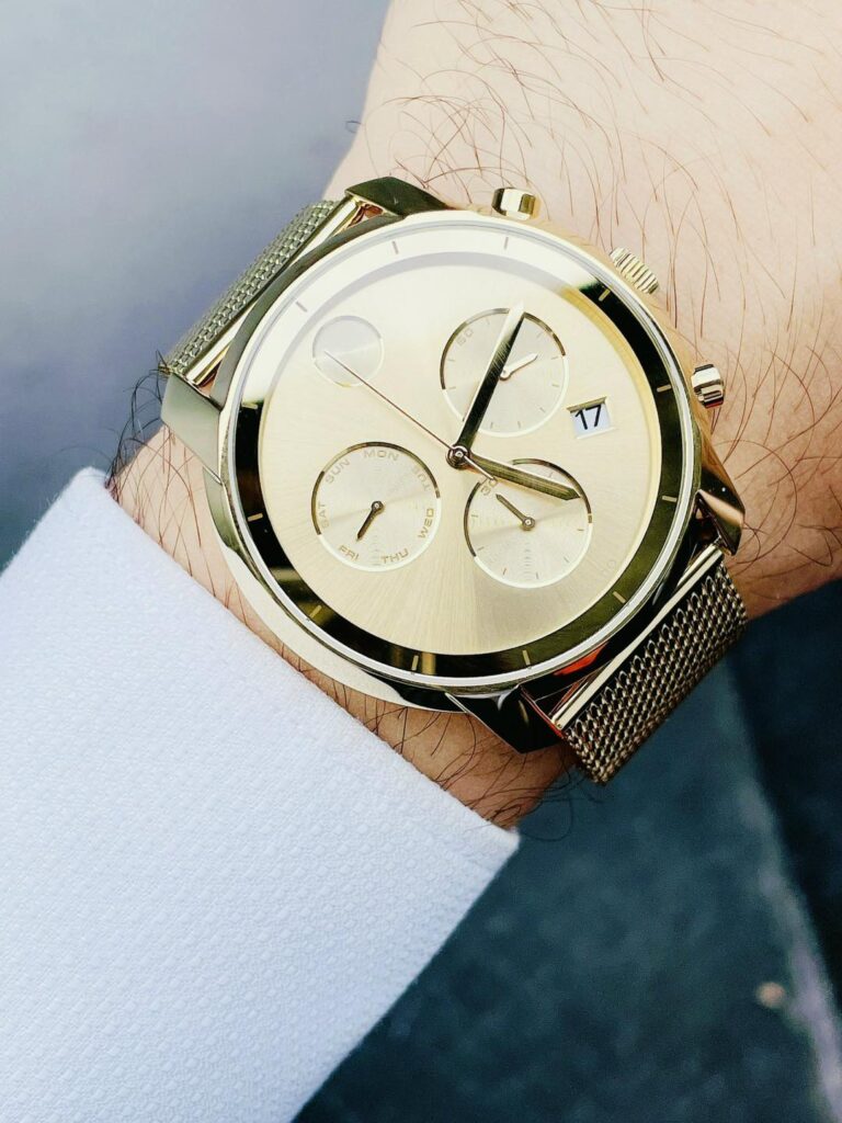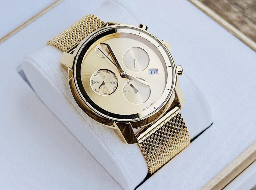 Đồng Hồ Movado Nam Chính Hãng 3600372 Bold Chronograph Gold Dial Mesh Men’s Watch