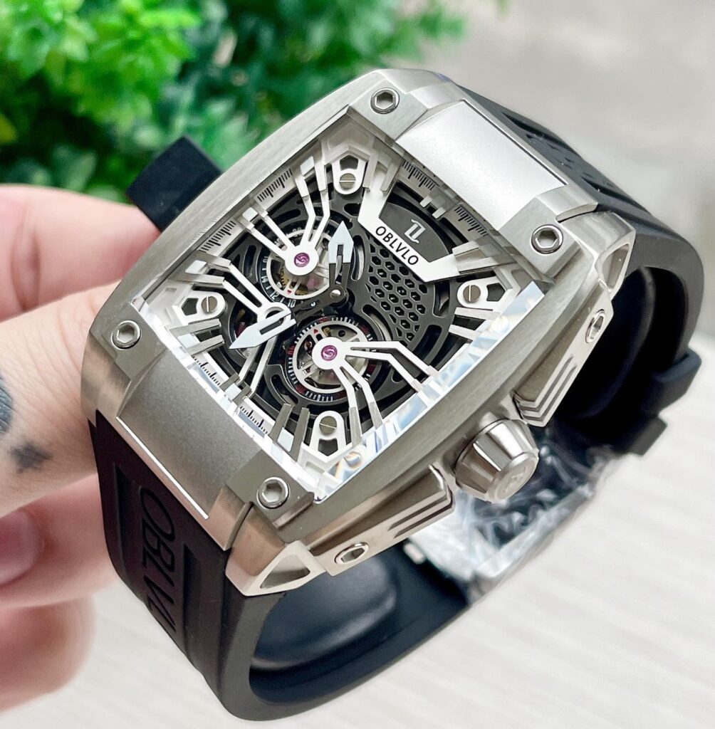 Đồng Hồ Oblvlo Chính Hãng Nam Automatic Mechanical Square Skeleton Men’s Watch