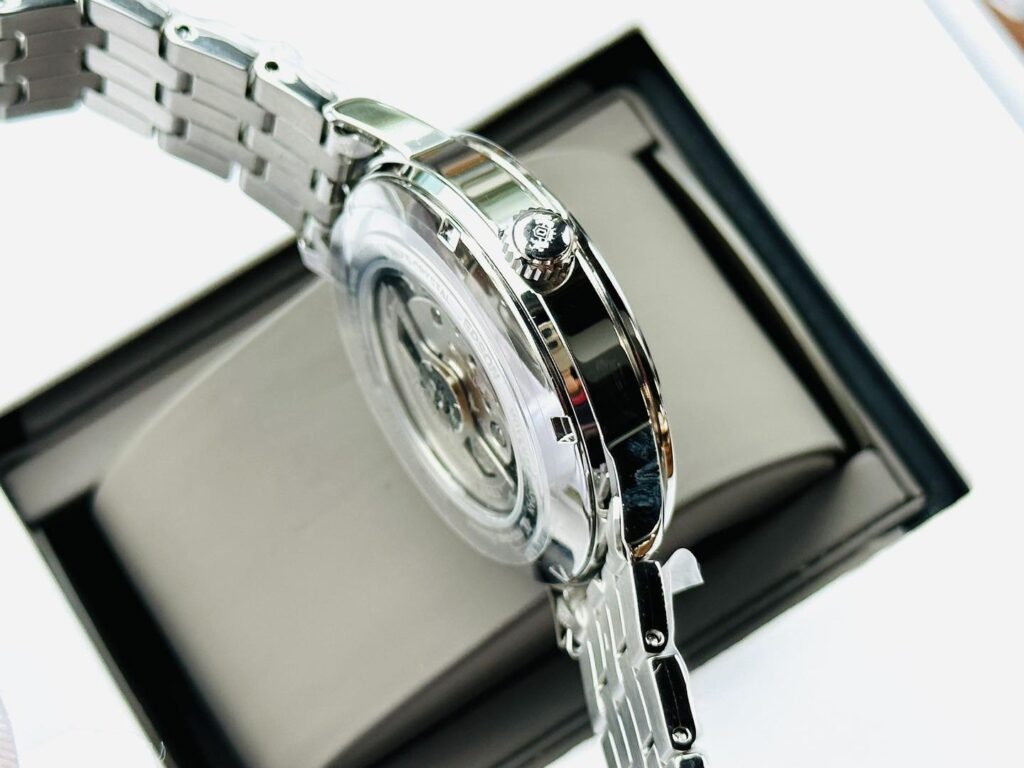 - Chỉ bảo hành thay thế mới cho những linh kiện, phụ tùng bị hỏng do lỗi của nhà sản xuất – không thay thế bằng một chiếc đồng hồ khác.Những đồng hồ có biểu hiện chạy sai giờ (nhanh hoặc chậm hơn), đứng máy và các lỗi khác thuộc về chức năng của bộ máy đồng hồ sẽ được áp dụng chế độ bảo hành của chúng tôi. Chế độ bảo hành của chúng tôi KHÔNG BAO GỒM các hư hại bên ngoài của đồng hồ.